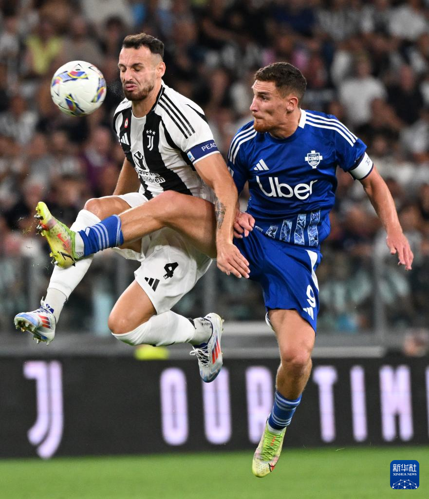 8月19日,尤文图斯队球员加蒂(左)与科莫队球员加布里埃洛尼在比赛中拼抢。新华社发(阿尔贝托·林格利亚摄)