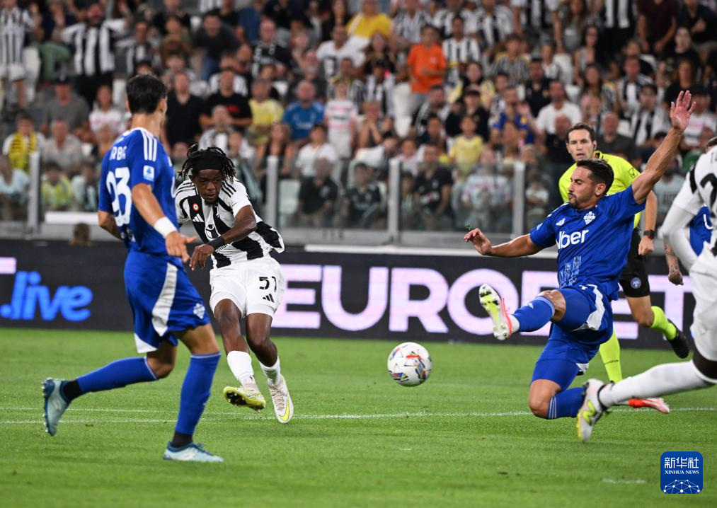 8月19日,尤文图斯队球员姆班古拉在比赛中射门得分。新华社发(阿尔贝托·林格利亚摄)