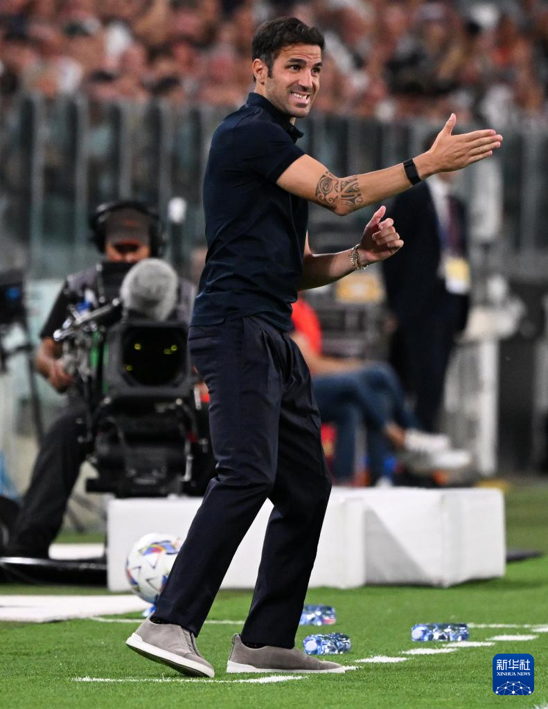 8月19日,科莫队主教练法布雷加斯在场边指挥。新华社发(阿尔贝托·林格利亚摄)