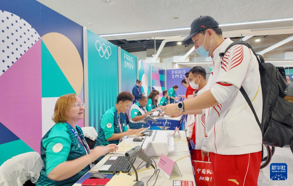 8月21日,中国体育代表团成员抵达机场后激活证件。新华社记者 才扬 摄