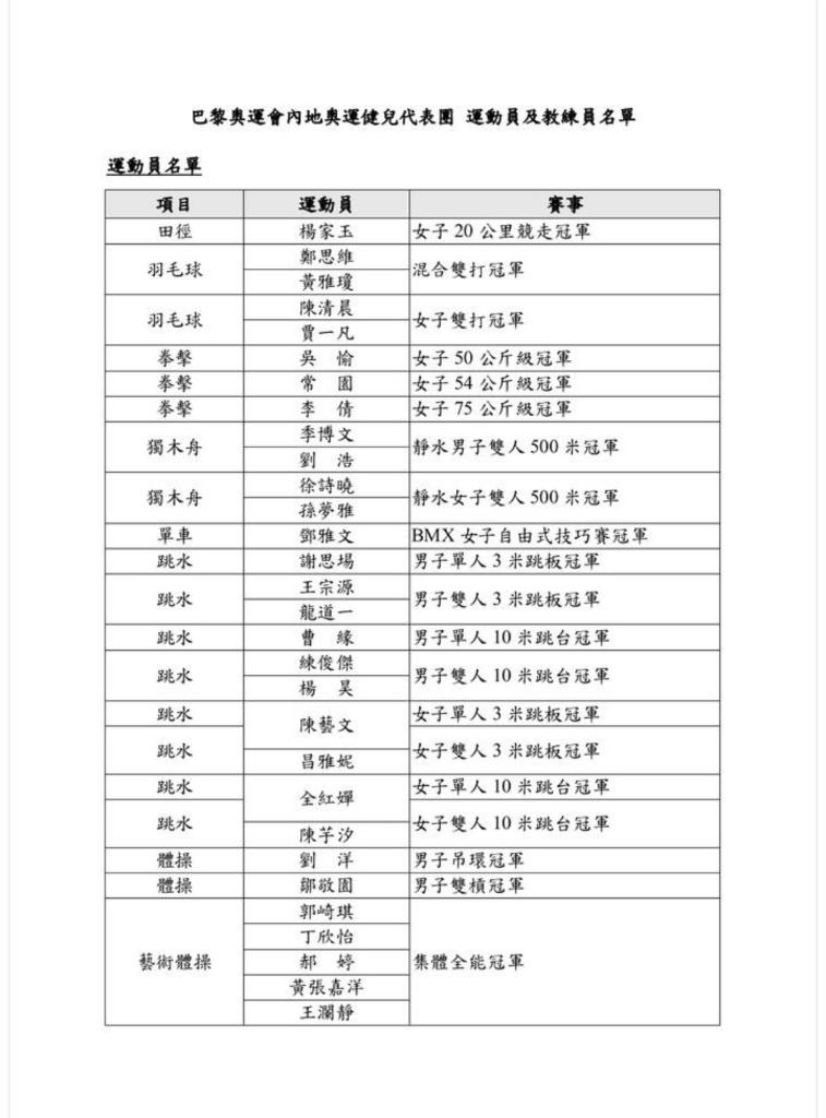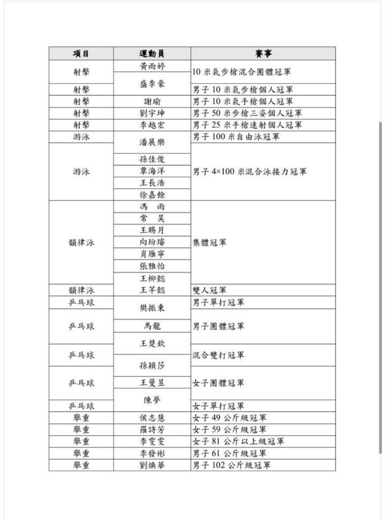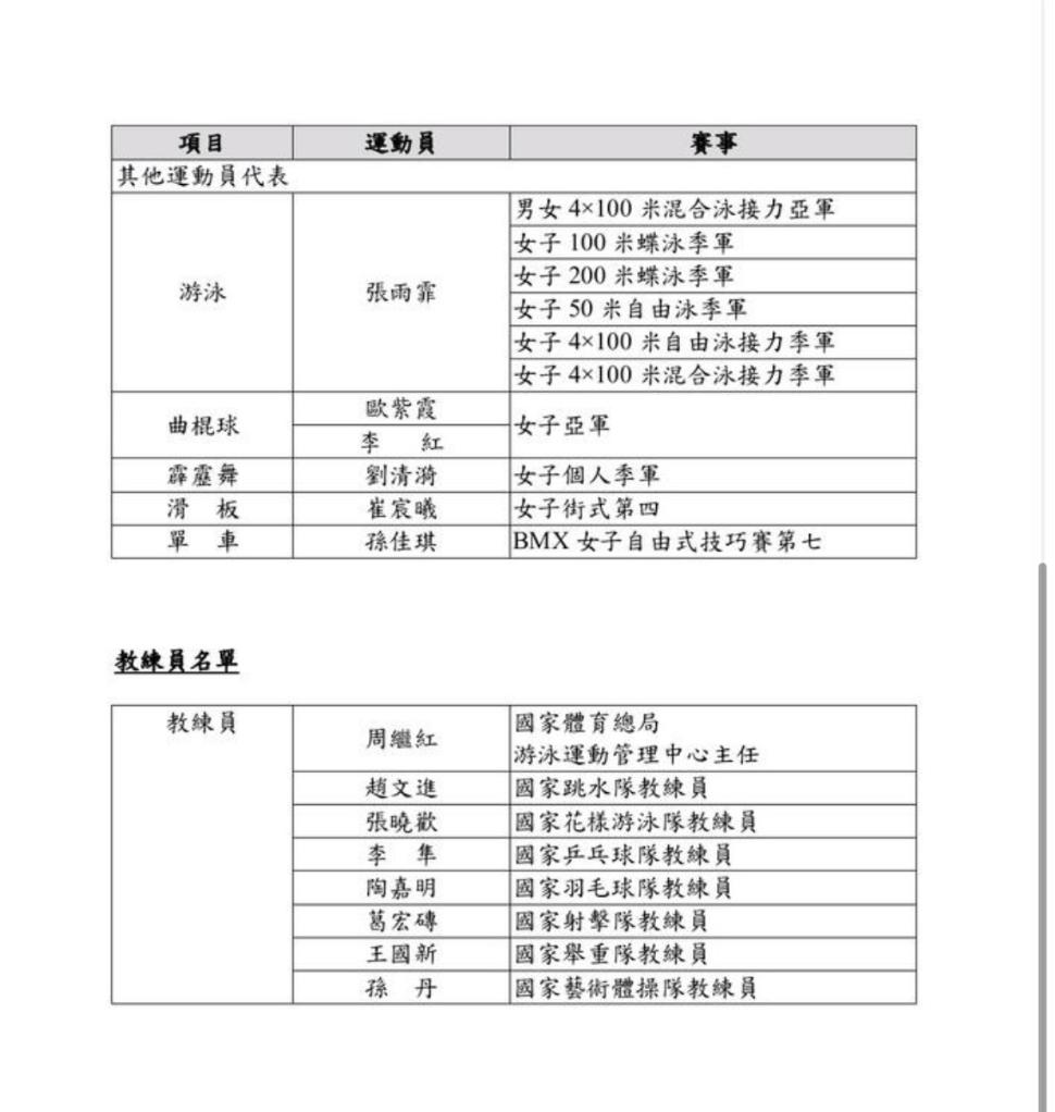 新华社香港8月23日电(记者王子江)香港特区政府23日公布巴黎奥运会内地奥运健儿访港代表团名单,在获得金牌的运动员中,除了正在备战美网的郑钦文,其他全部在列。