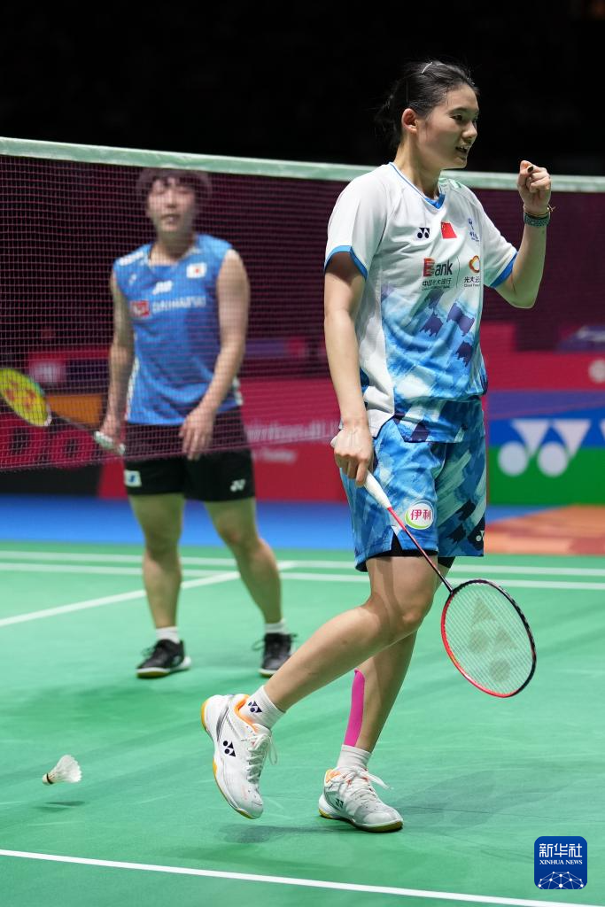 8月23日,日本选手山口茜在比赛中回球。新华社记者 张笑宇 摄