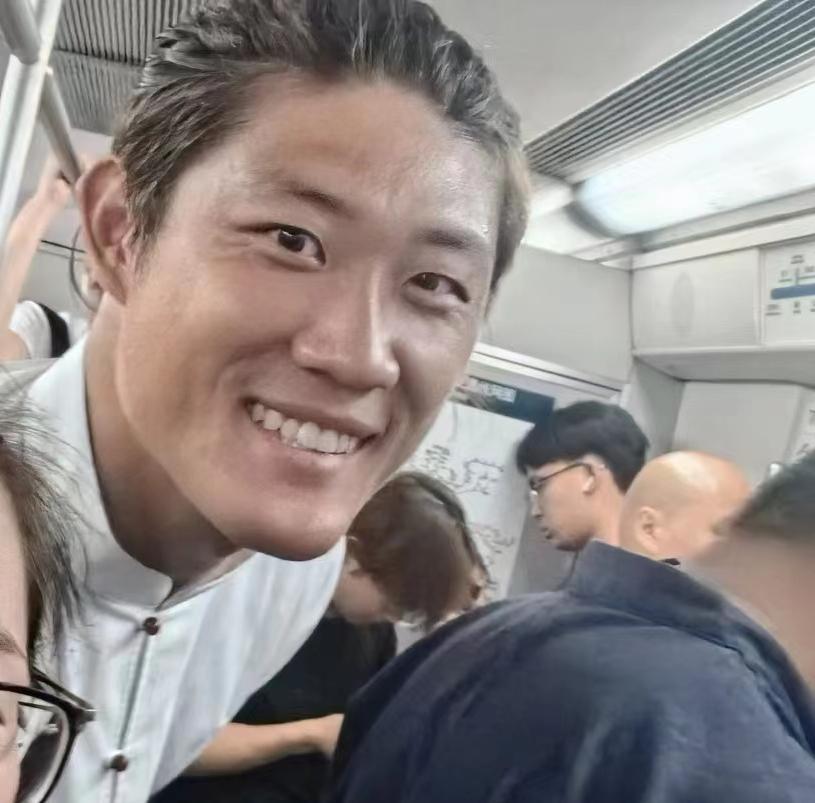 网友在地铁上偶遇赶飞机的张之臻