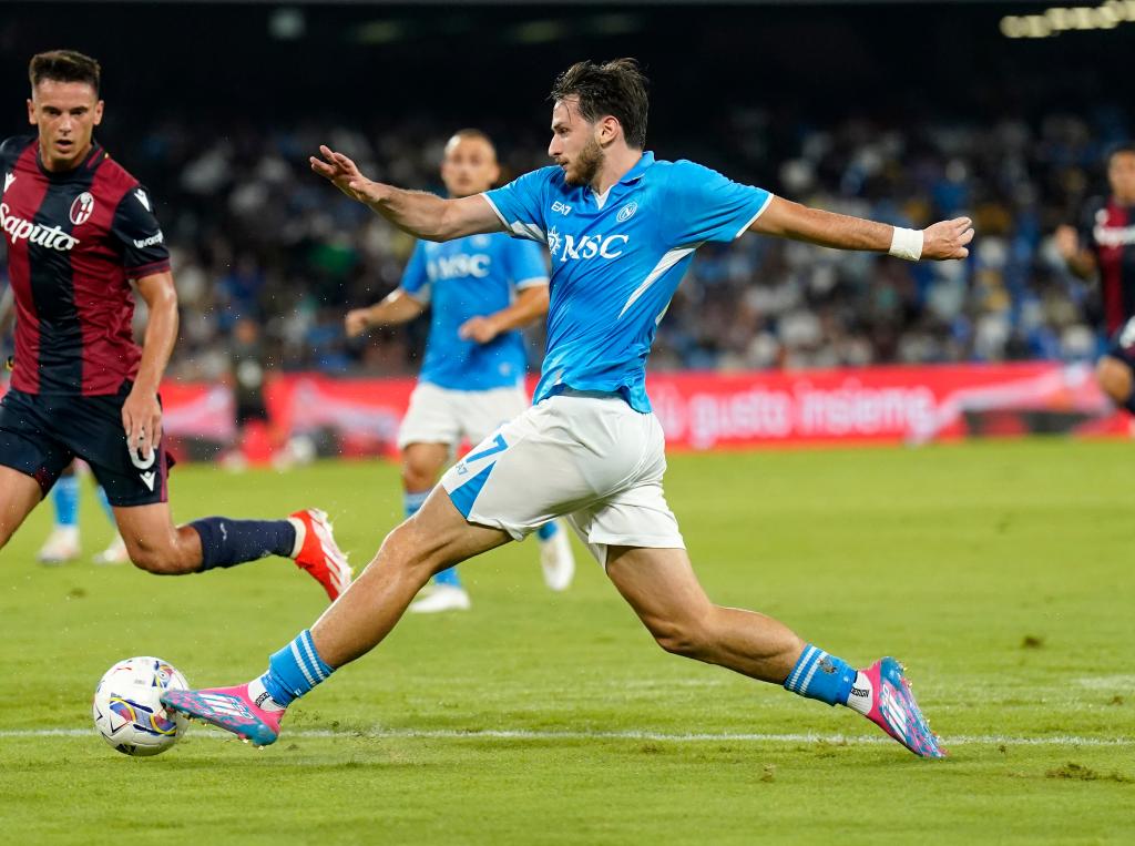 新赛季首轮联赛失利的那不勒斯,当日在迎战博洛尼亚的比赛中,从开局便展现出强烈的求胜欲望。上半时双方都制造了破门机会,第42分钟,主队球员克瓦拉茨赫利亚头球击中横梁弹出,与破门失之交臂,不过发挥出色的他在上半时补时阶段送出精准传球,助攻队友迪洛伦佐门前停球推射破门,以相当有观赏性的方式拔得头筹。