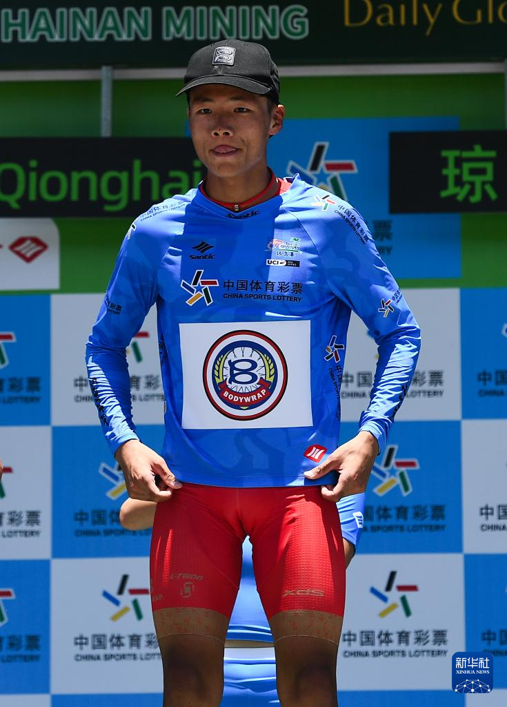 8月27日,巴迪瑞洲际车队车手王奎程获得代表亚洲最佳个人成绩的蓝衫。新华社记者 杨冠宇 摄