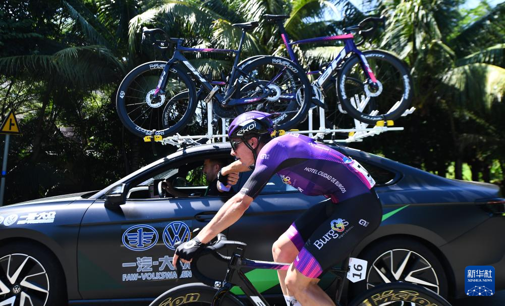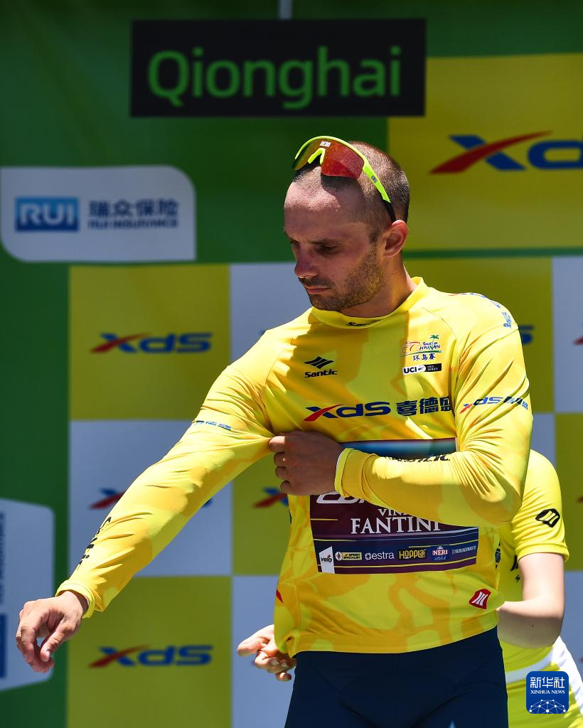 8月27日,意大利克罗蒂克车队车手雅各布·马雷奇科获得代表个人总成绩第一名的黄衫。新华社记者 杨冠宇 摄
