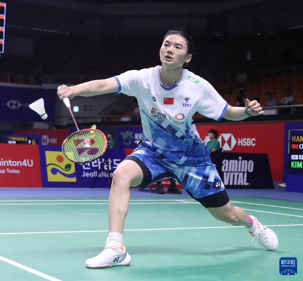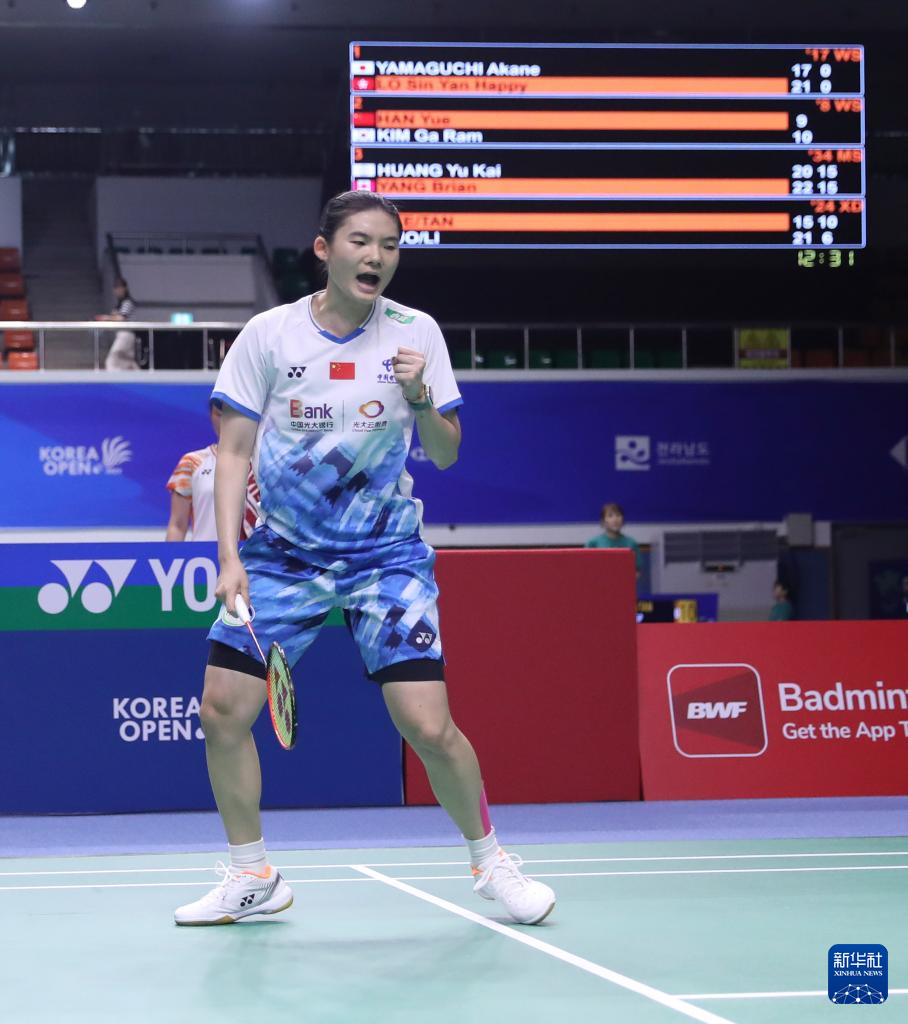 当日,在韩国木浦市举行的2024年韩国羽毛球公开赛女单首轮比赛中,中国选手韩悦2比1战胜韩国选手金佳蓝,晋级次轮。