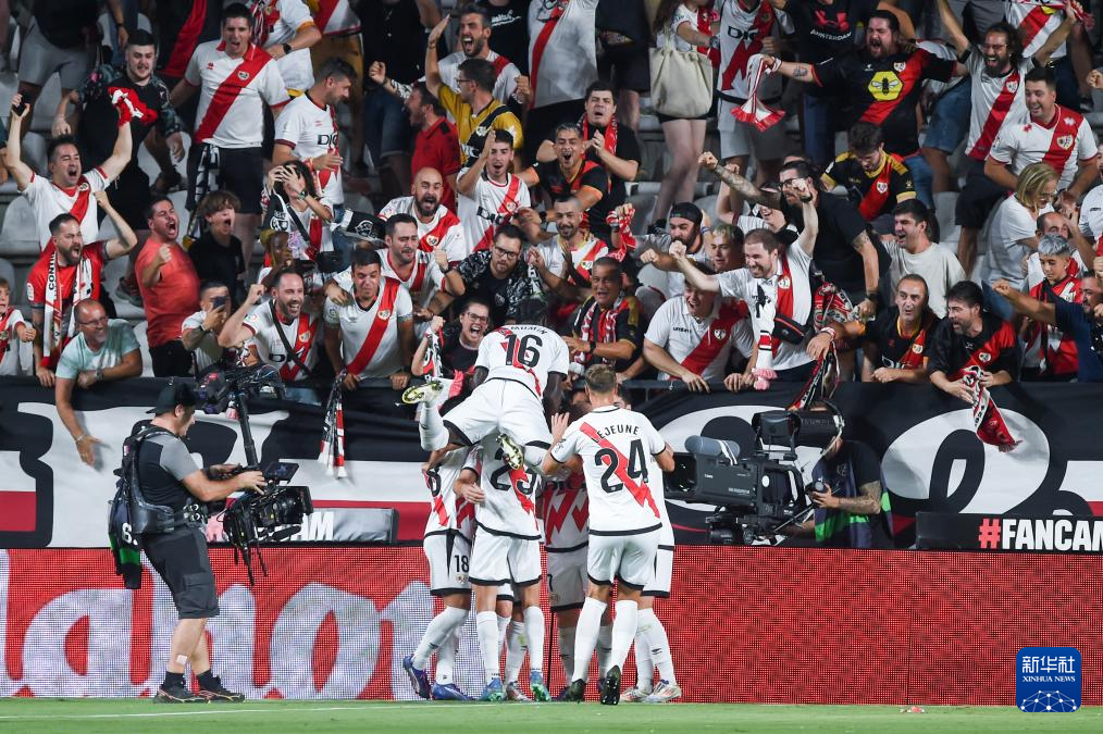 8月27日,巴列卡诺队球员在比赛中庆祝进球。新华社发(古斯塔沃·巴连特摄)