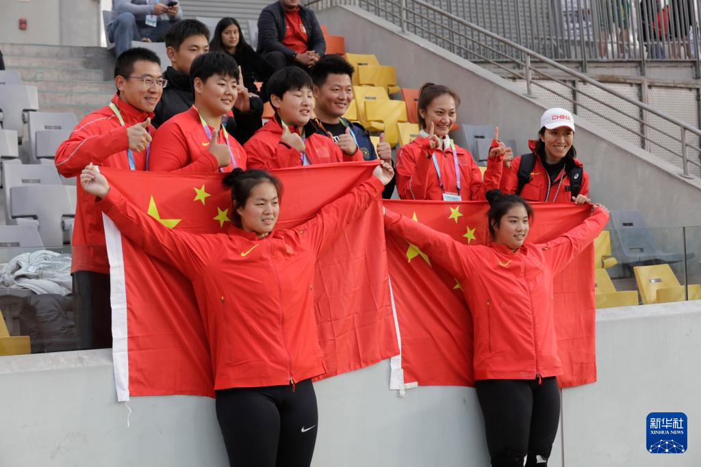 当日,2024年世界田联20岁以下锦标赛(田径世青赛)女子铁饼比赛在秘鲁首都利马举行,中国选手韩冰杨、黄静如包揽冠亚军。