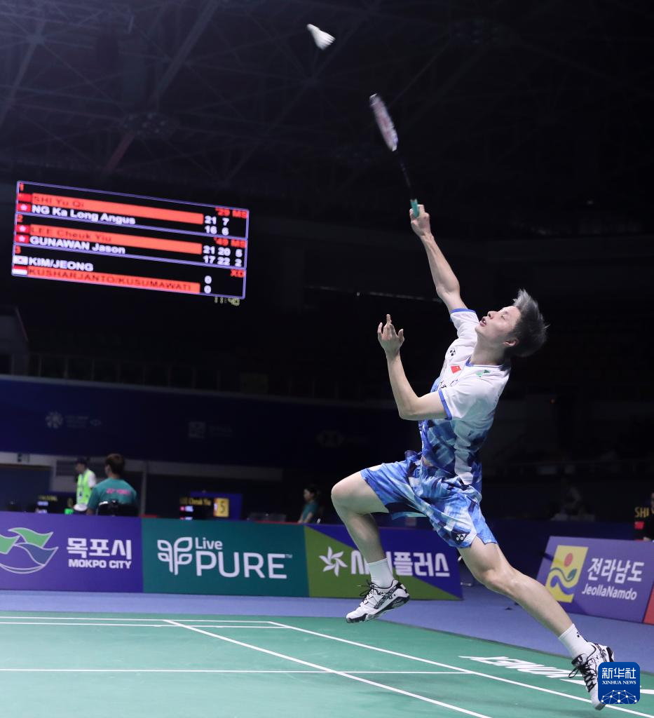 当日,在韩国木浦市举行的2024年韩国羽毛球公开赛男单第二轮比赛中,中国选手石宇奇2比0战胜中国香港选手伍家朗,晋级八强。