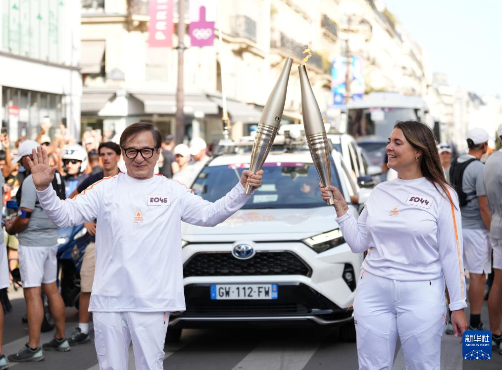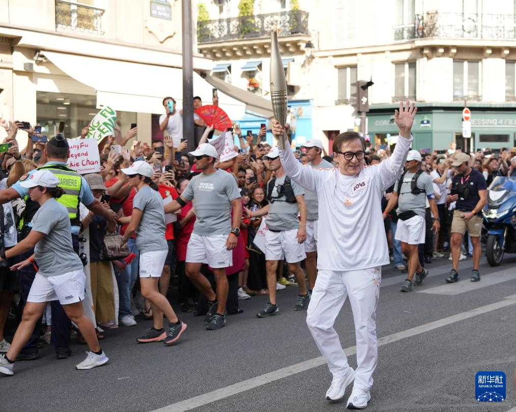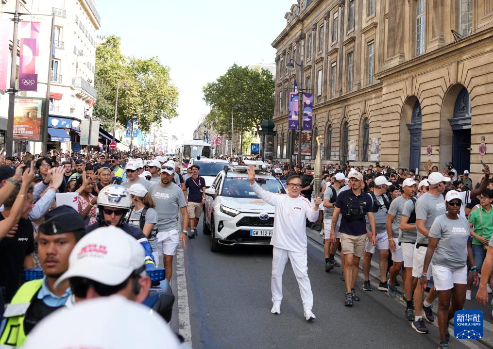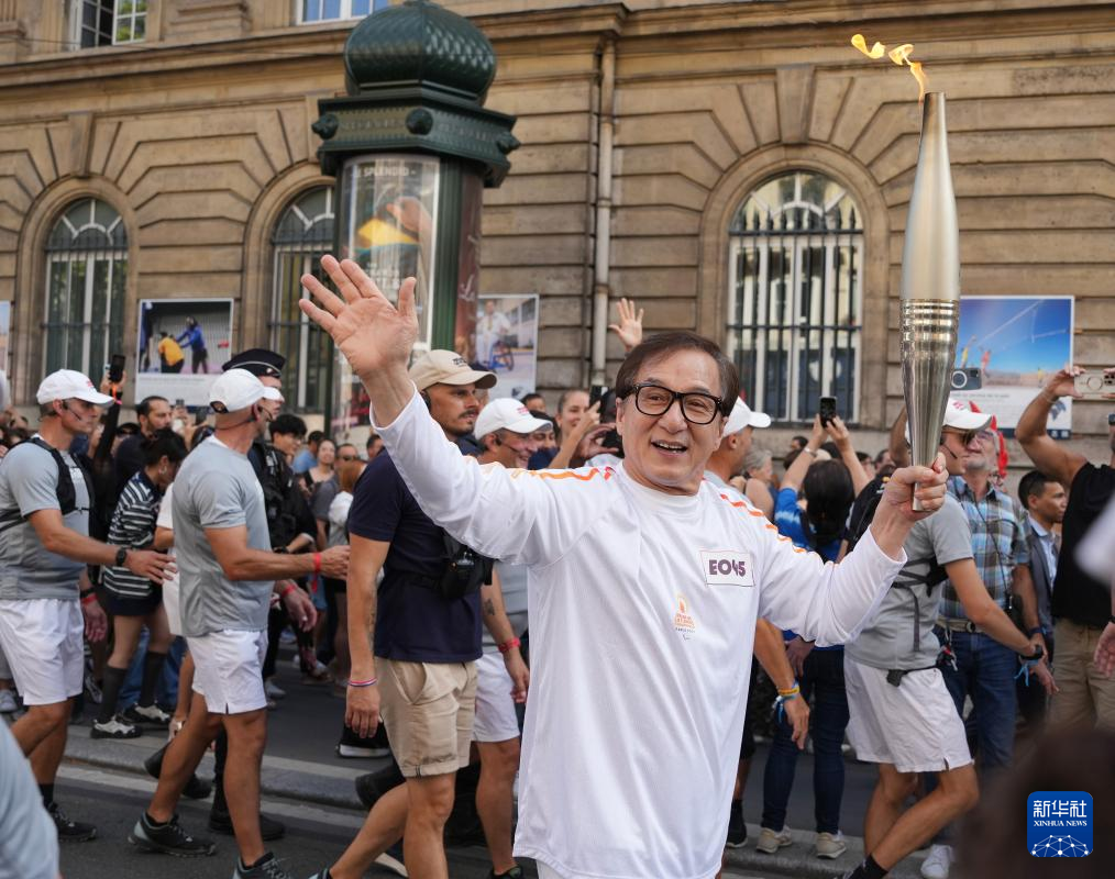 8月28日,成龙在巴黎残奥会火炬传递中。新华社记者 贺灿铃 摄