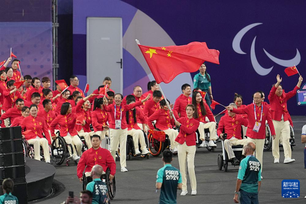 8月28日,中国体育代表团在开幕式上入场。新华社发(中国残联供图)pagebreak
