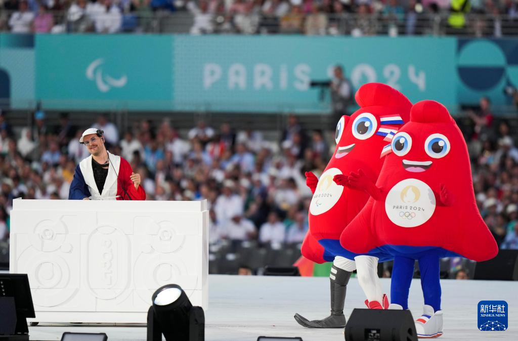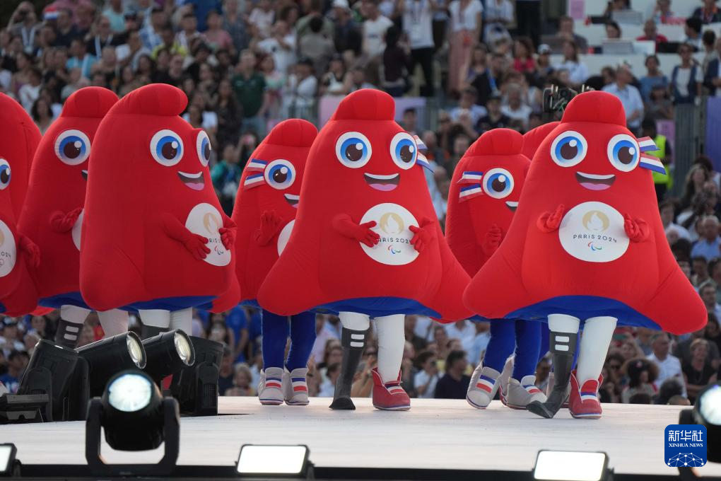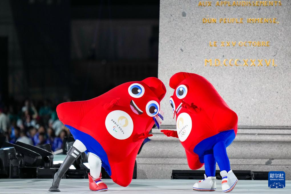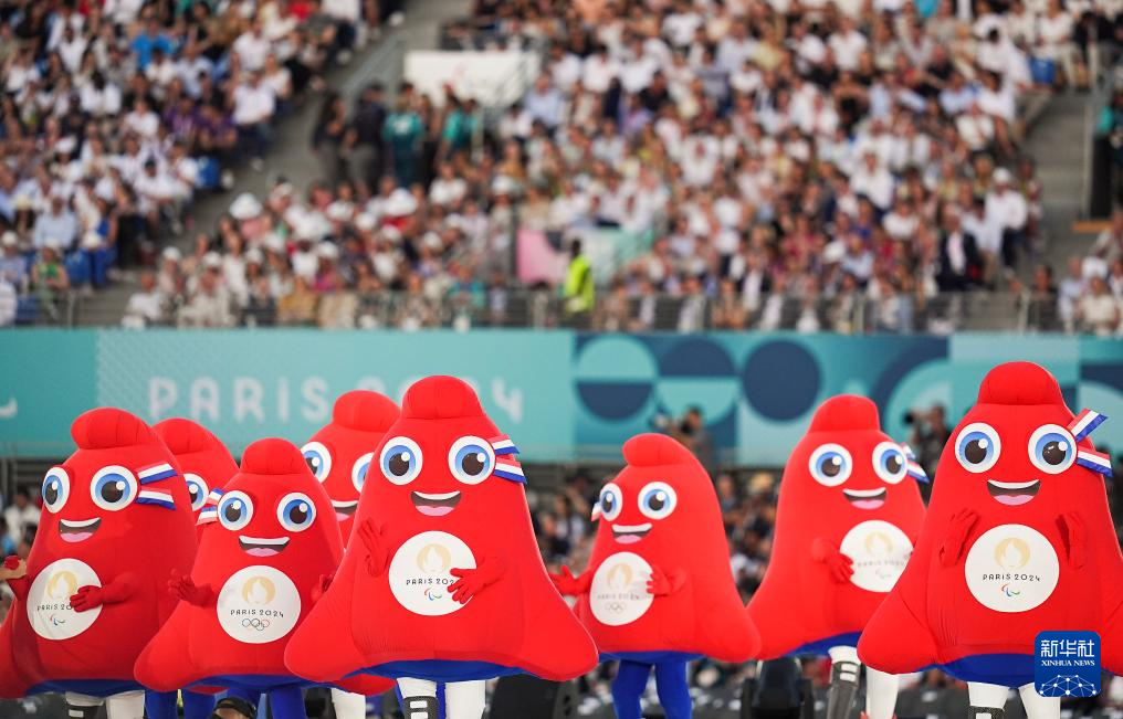 8月28日,巴黎奥运会与巴黎残奥会吉祥物在开幕式上出场。新华社记者 邢广利 摄