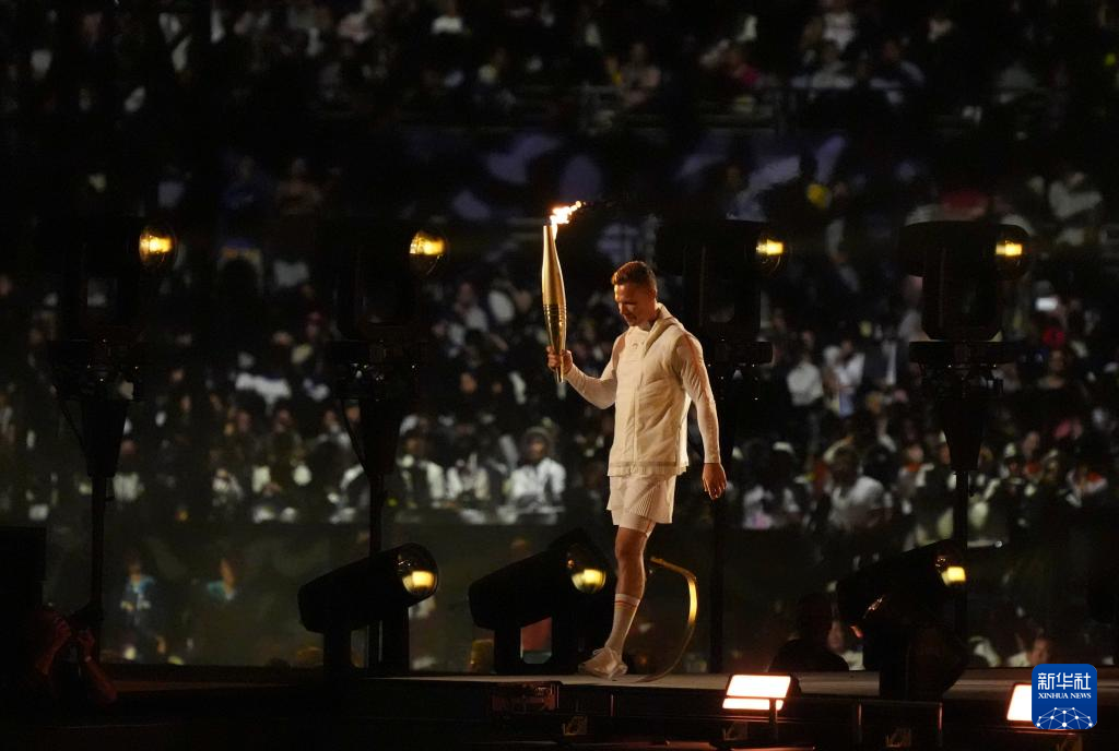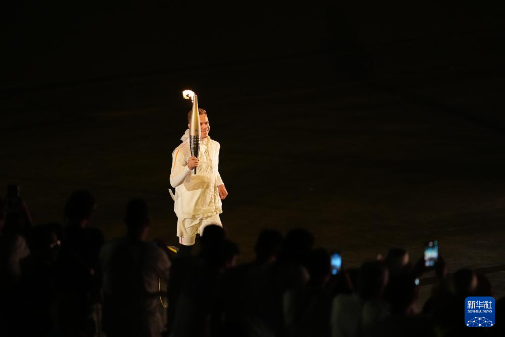 8月28日,火炬手雷姆在开幕式上传递火炬。新华社记者 熊琦 摄