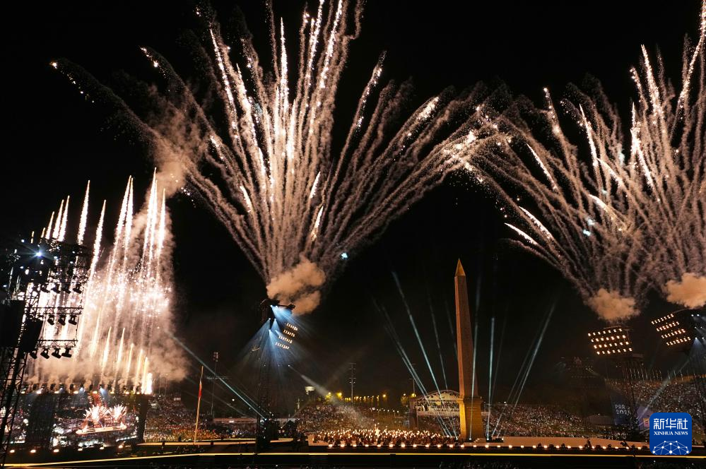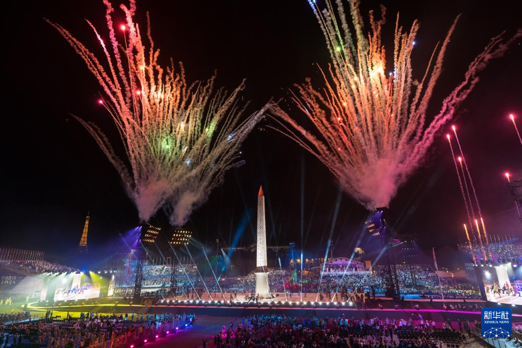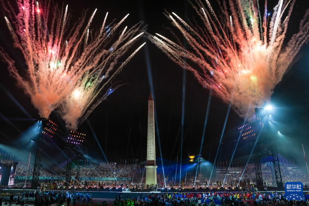 这是8月28日在巴黎协和广场拍摄的开幕式现场。新华社记者 张铖 摄pagebreak