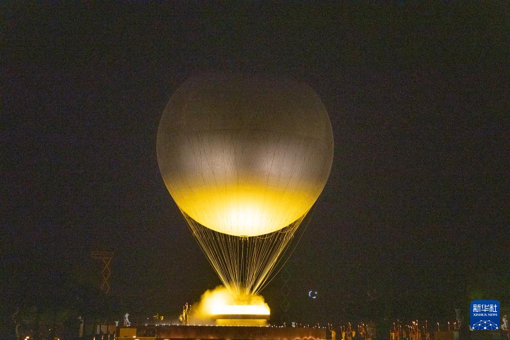 8月28日,热气球状的主火炬升空。新华社记者 邢广利 摄