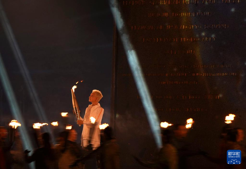 8月28日,火炬手维奥在开幕式上传递火炬。新华社记者 邢广利 摄