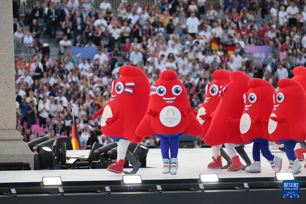 8月28日,巴黎奥运会与巴黎残奥会吉祥物在开幕式上出场。新华社记者 侯俊 摄