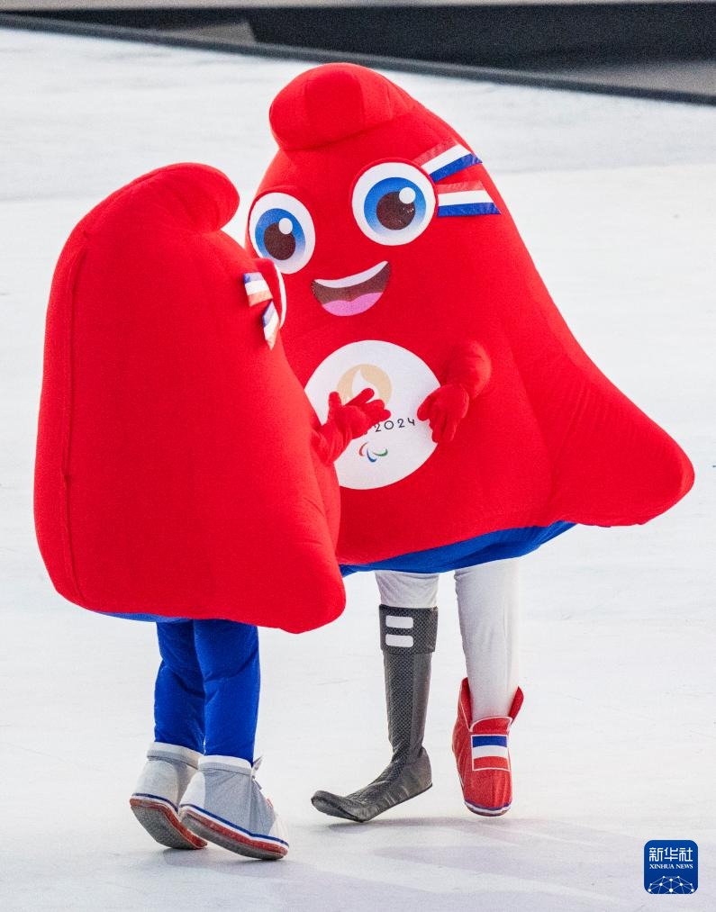 8月28日,巴黎奥运会与巴黎残奥会吉祥物在开幕式上出场。新华社记者 张铖 摄pagebreak