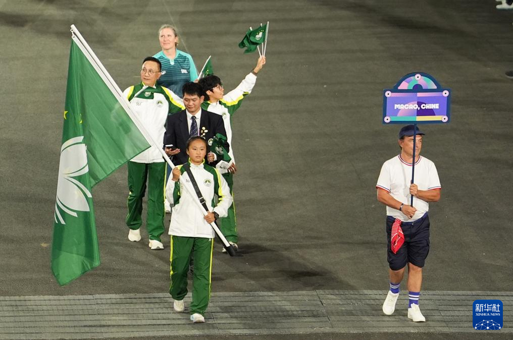8月28日,中国澳门体育代表团在开幕式上入场。新华社记者 侯昭康 摄