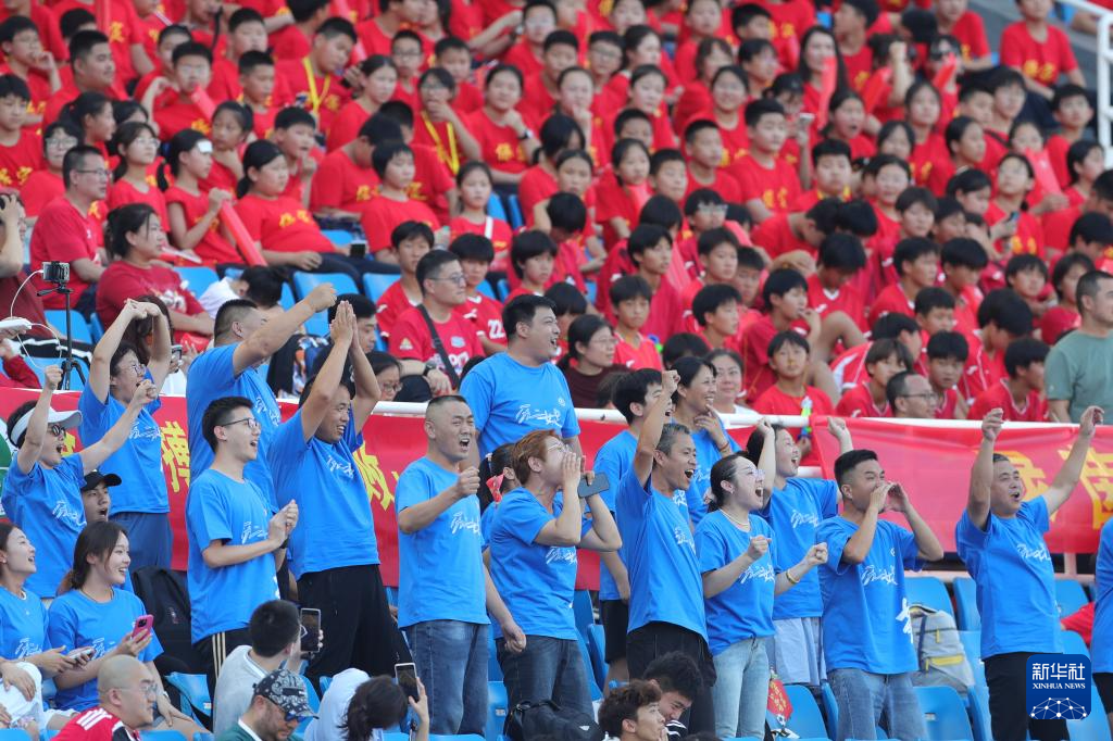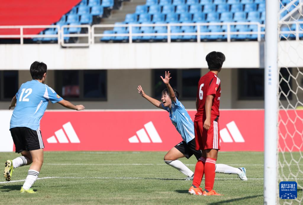 8月30日,济南市历城第二中学队球员庆祝进球。