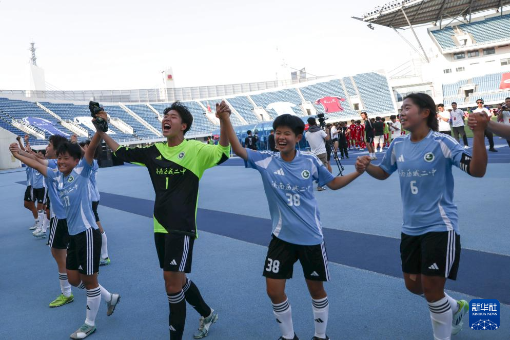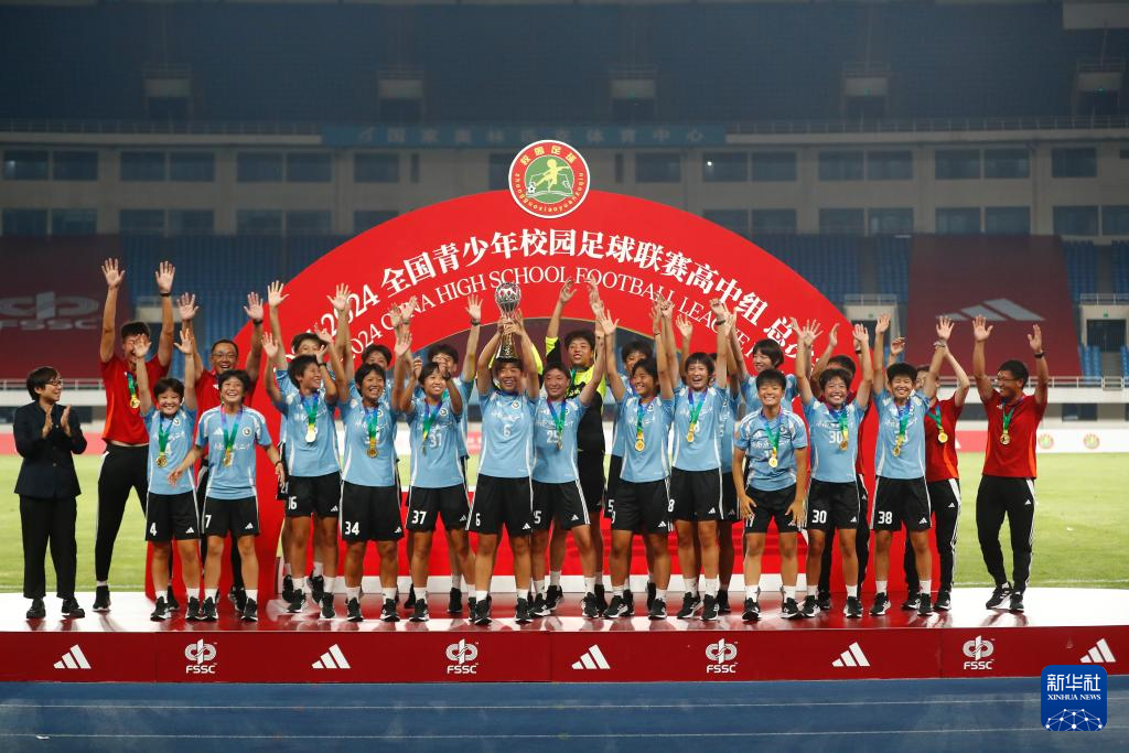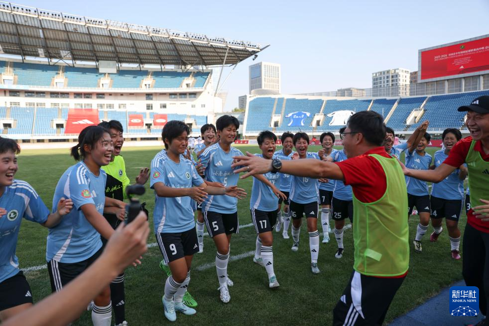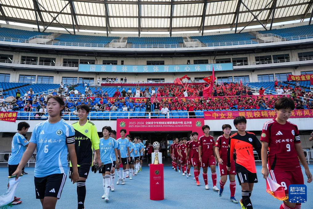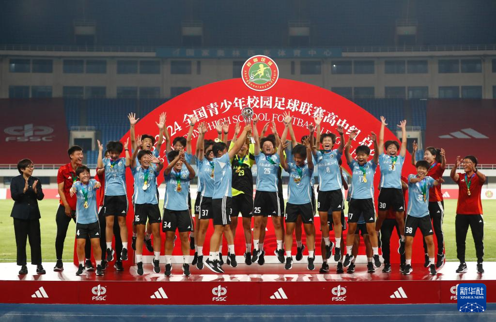 当日,2023-2024全国青少年校园足球联赛高中女子组决赛在北京奥体中心体育场举行,济南市历城第二中学队2比0战胜保定市第一中学队,夺得冠军。