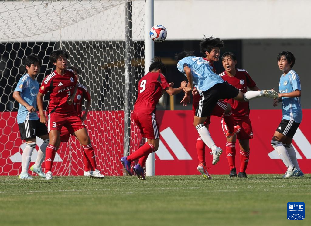 8月30日,济南市历城第二中学队球员张颖婕(左二)主罚任意球。