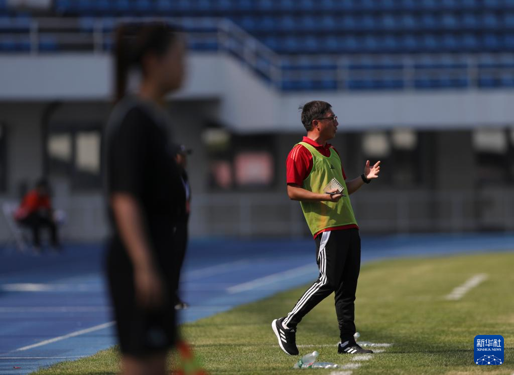 8月30日,济南市历城第二中学队主教练姚波在场边指挥。