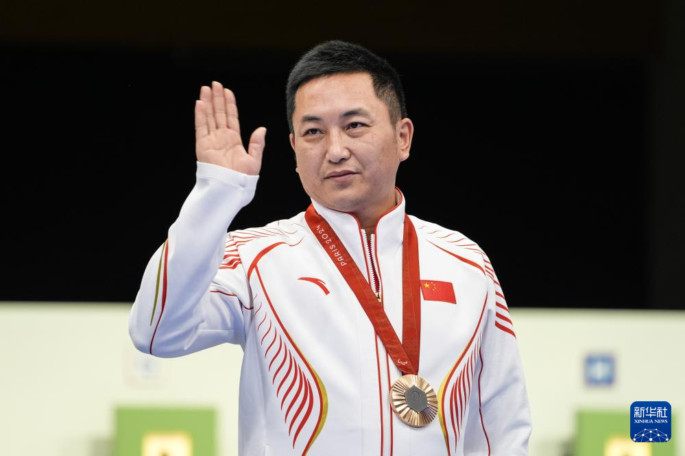 当日,在法国沙托鲁举行的巴黎残奥会射击男子10米气手枪P1-SH1级决赛中,中国选手杨超获得铜牌,娄小龙获得第六名。