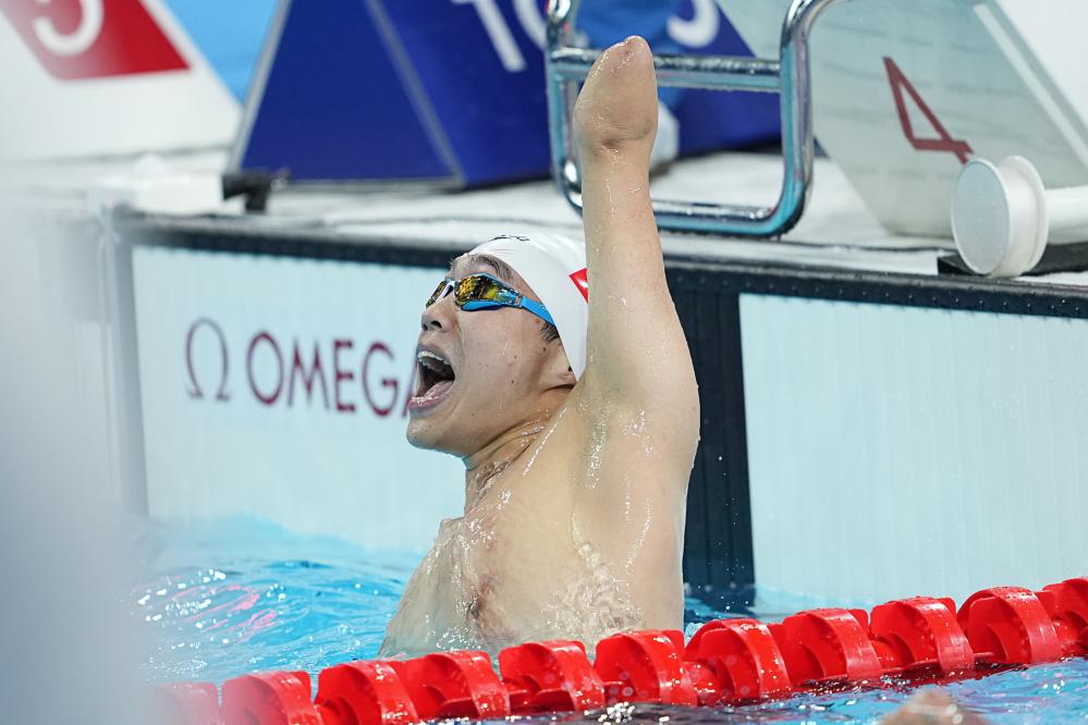 游泳赛场中国队有两枚金牌入账。在男子200米混合泳SM6级决赛中,郭金城、王金刚、杨洪三名中国选手参与角逐,在进入第三个50米后,“00”后杨洪占据领先位置,他最终以2分37秒31的成绩夺冠,并刷新世界纪录。