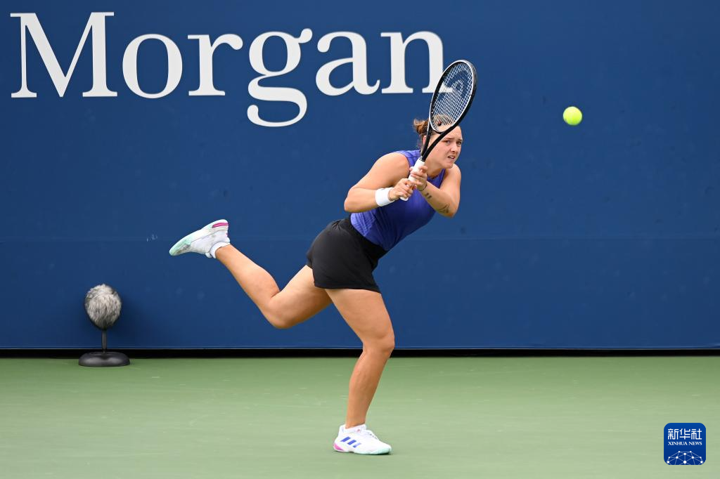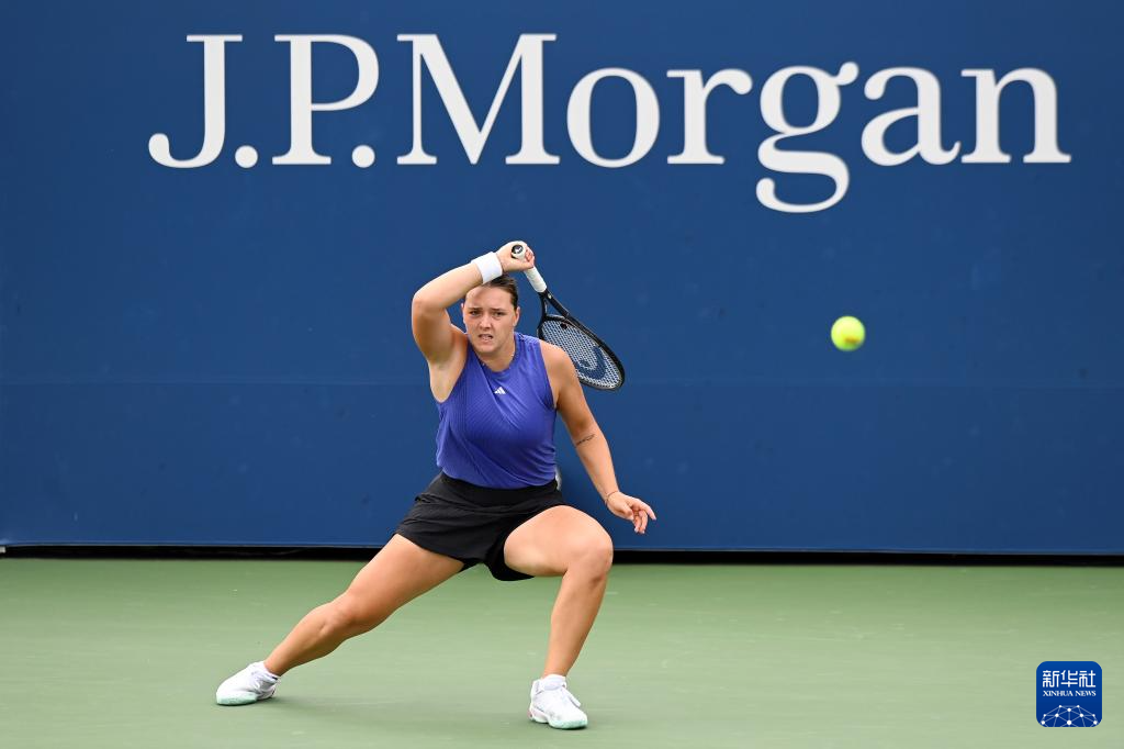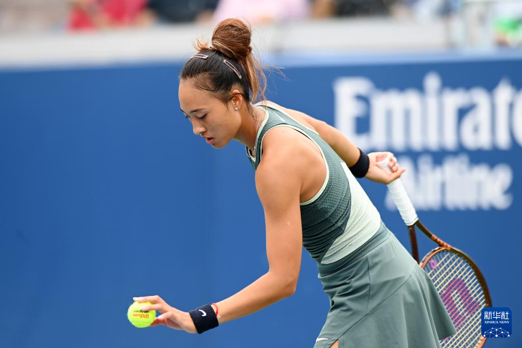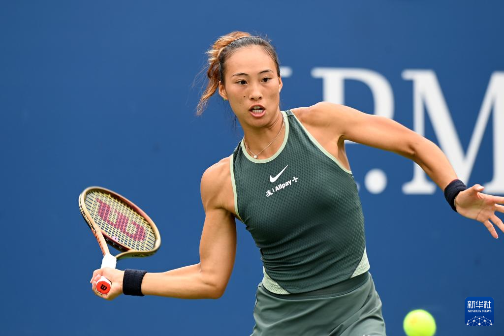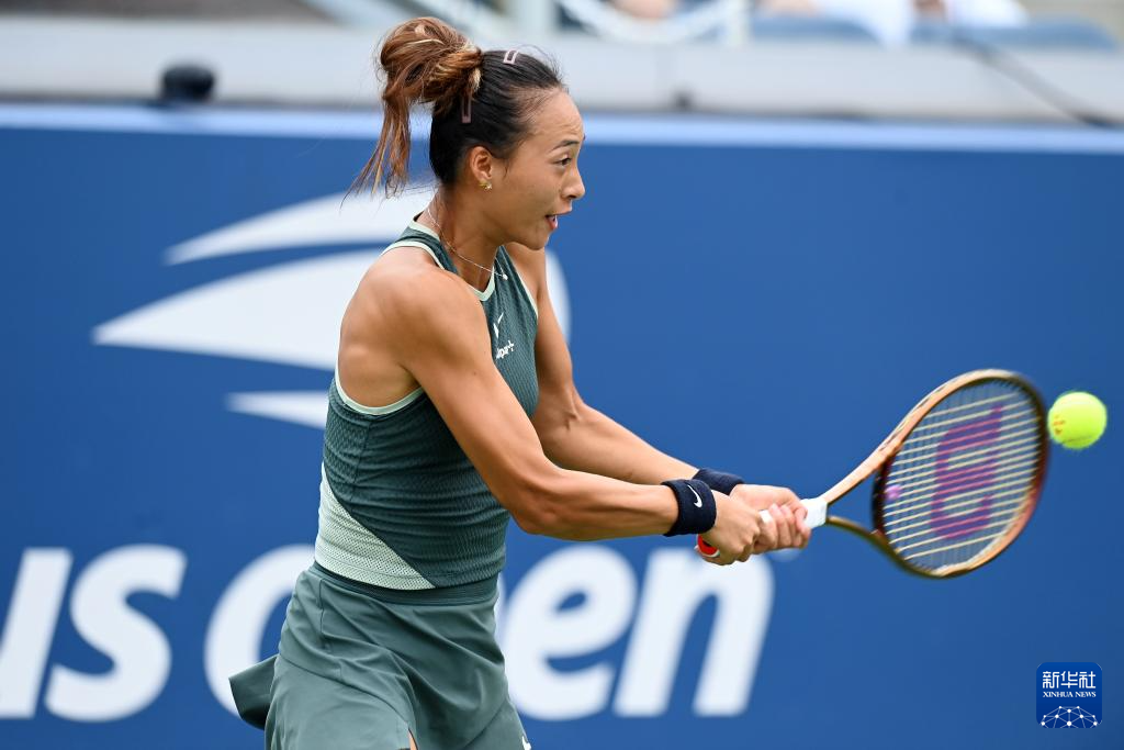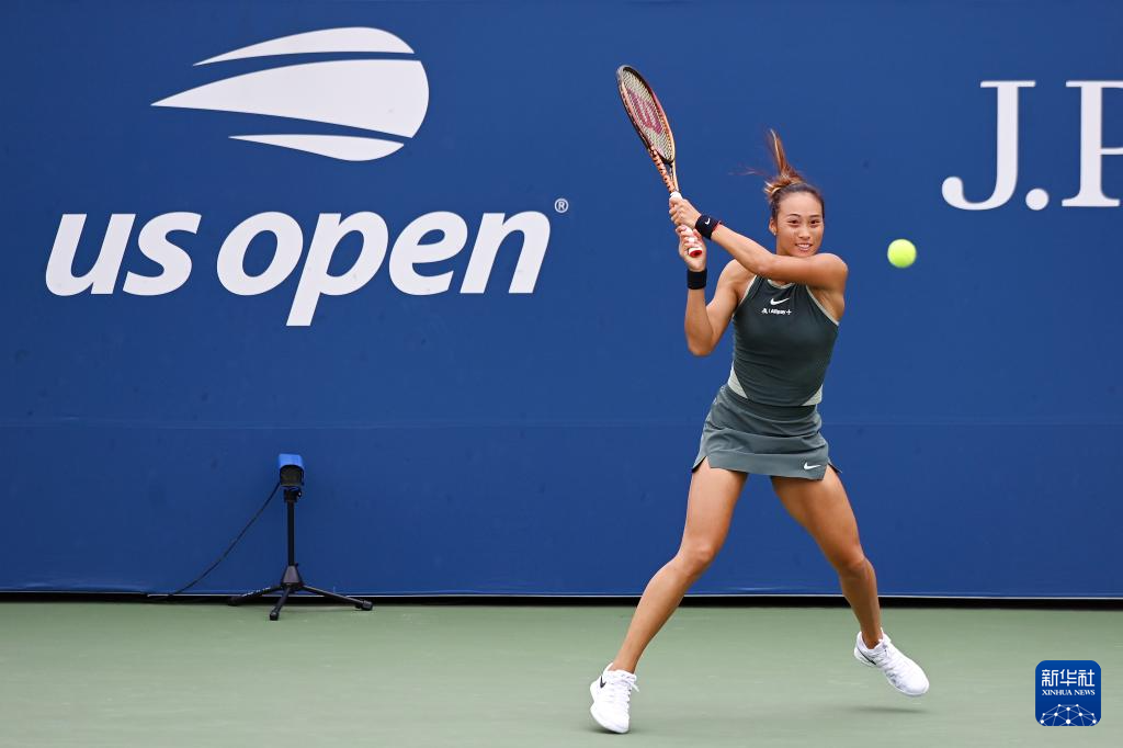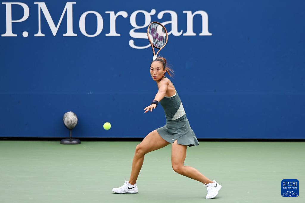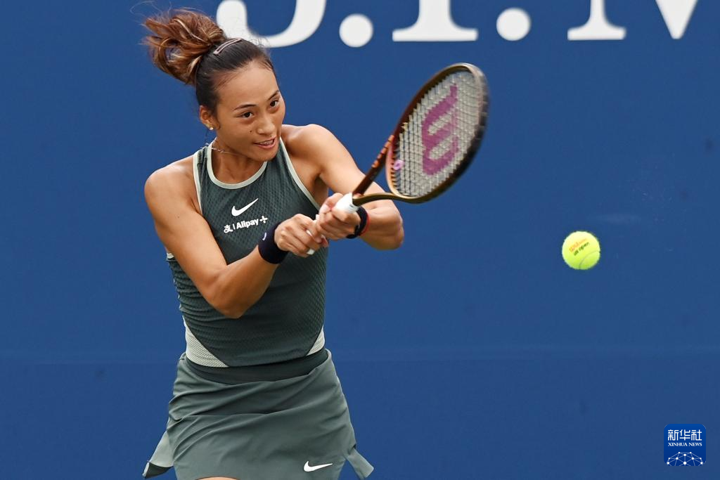 8月30日,郑钦文在比赛中回球。新华社记者 李睿 摄