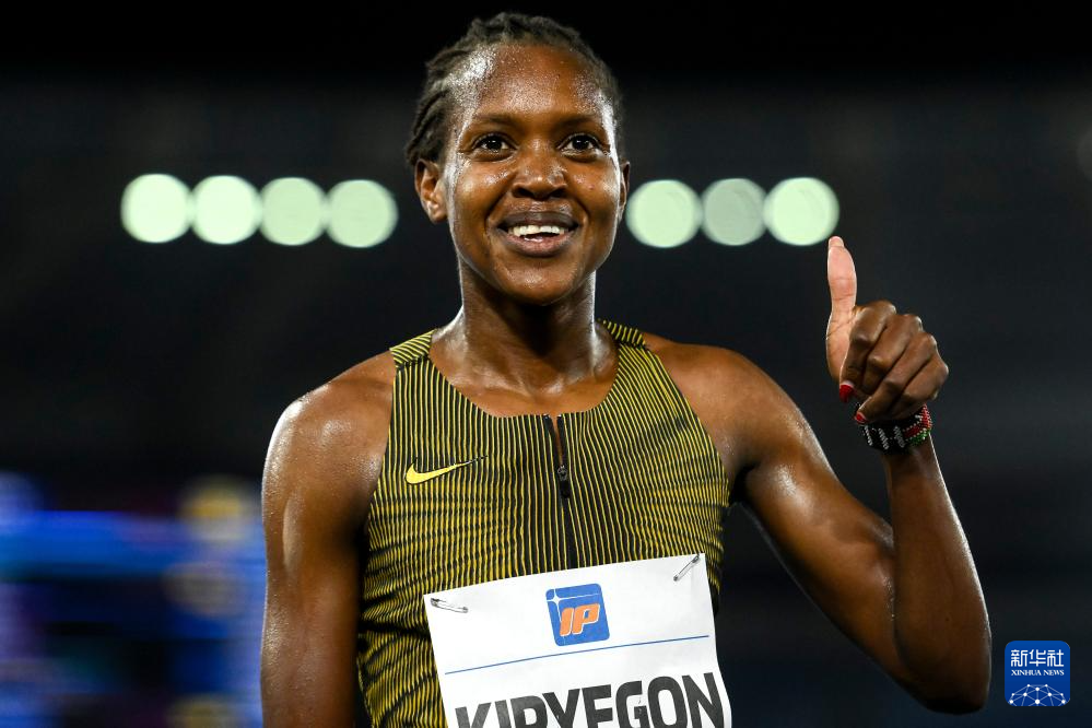 8月30日,肯尼亚选手基普页真在女子1500米决赛后庆祝。她以3分52秒89的成绩夺得冠军。新华社发(安德烈亚·斯塔乔利摄)