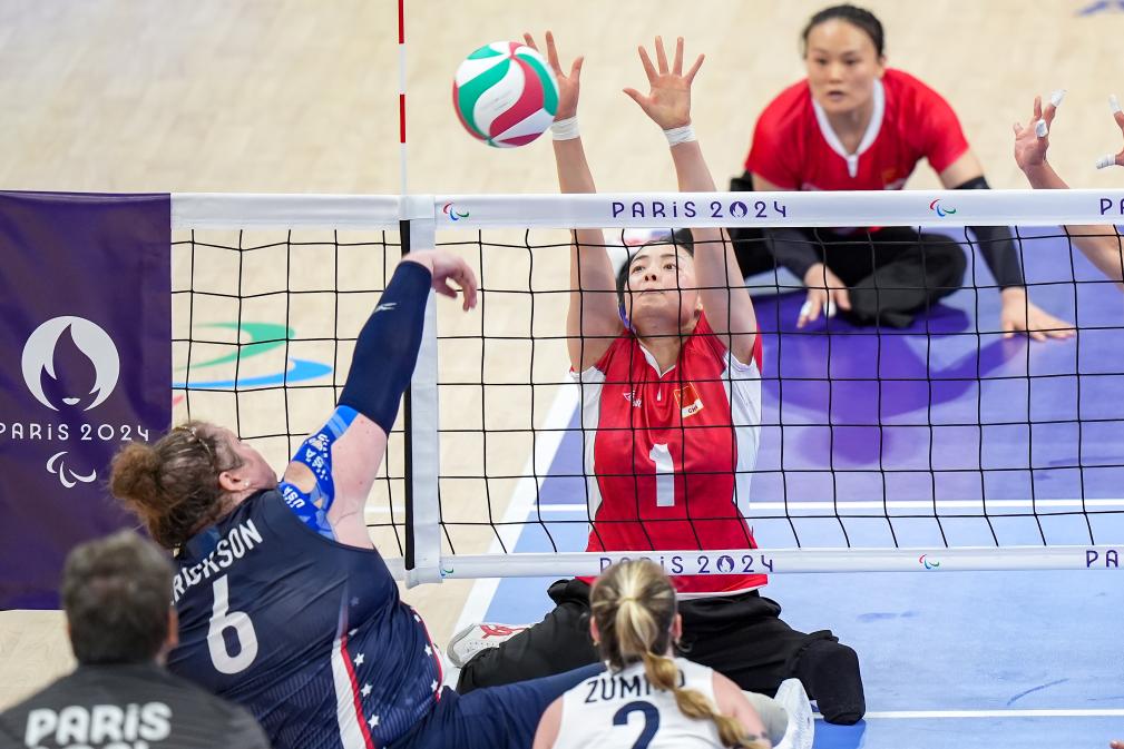 新华社巴黎8月30日电(记者马思嘉、张薇)30日,北巴黎竞技场外秋雨淅沥,场馆内却一片火热——巴黎残奥会女子坐式排球小组赛中,中国队遭遇老对手、卫冕冠军美国队。