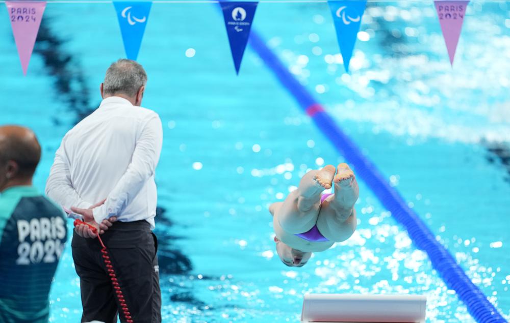新华社巴黎8月30日电(记者马思嘉、张薇)30日晚的巴黎拉德芳斯体育馆,巴黎残奥会男女混合4X50米自由泳接力20分决赛上演。诸多目光被中国队最后一棒选手吸引——他不戴泳帽、剃了光头,抵达终点时用头奋力撞向池壁,为中国队锁定金牌,并以2分14秒98打破世界纪录,领先排名第二的美国队4.01秒。