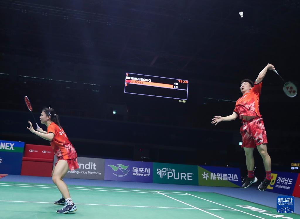 当日,在韩国木浦市举行的2024年韩国羽毛球公开赛混双半决赛中,中国组合郭新娃/李茜2比1战胜韩国组合金元昊/郑娜银 ,晋级决赛。