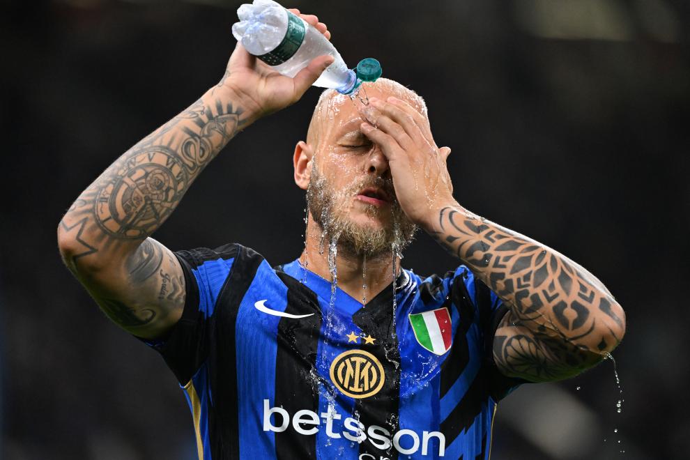 8月30日,国际米兰队球员迪马尔科在比赛前。新华社发(阿尔贝托·林格利亚摄)