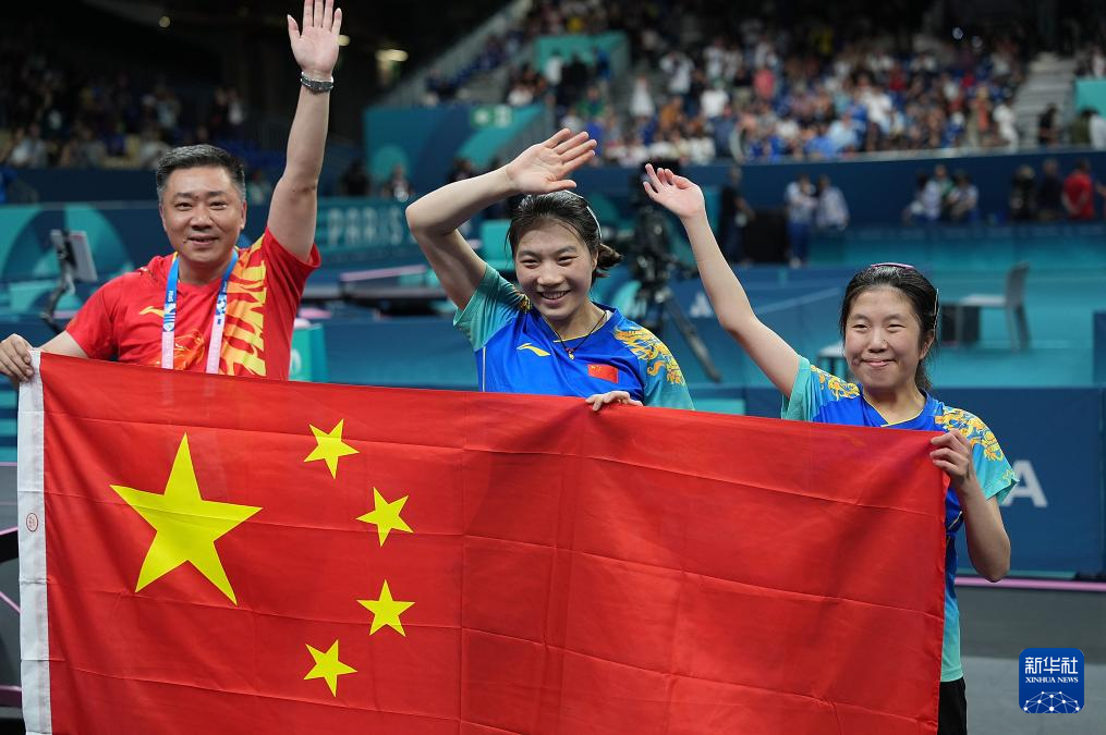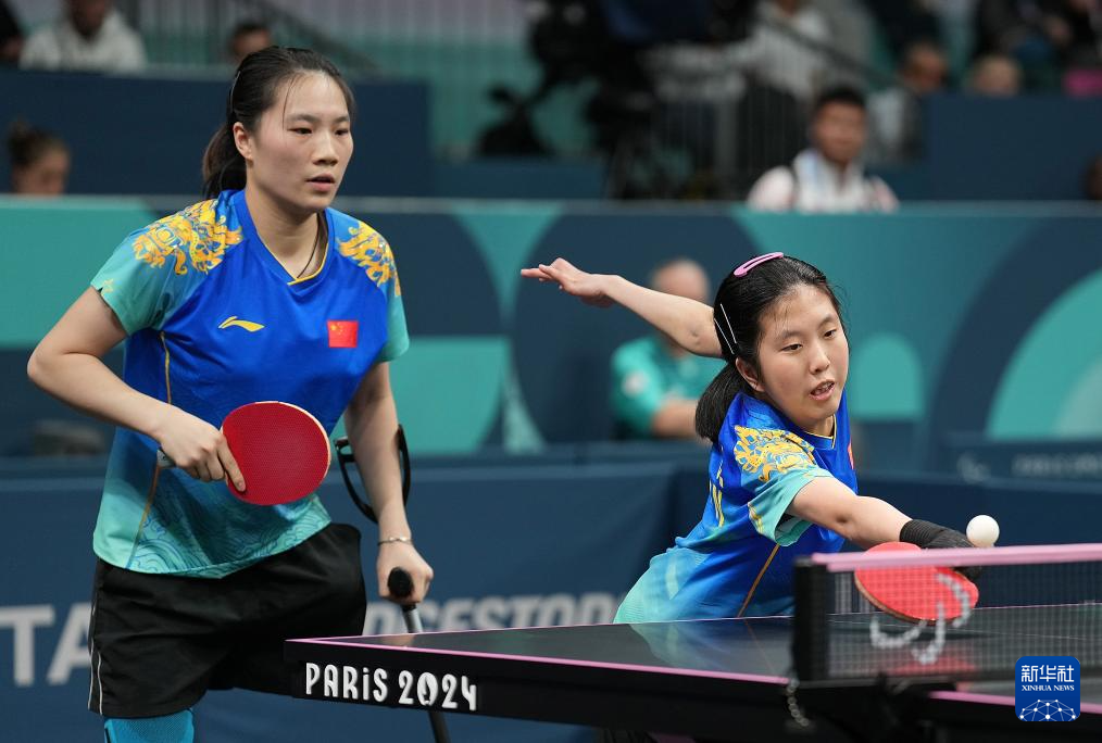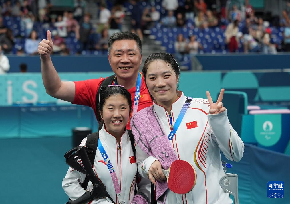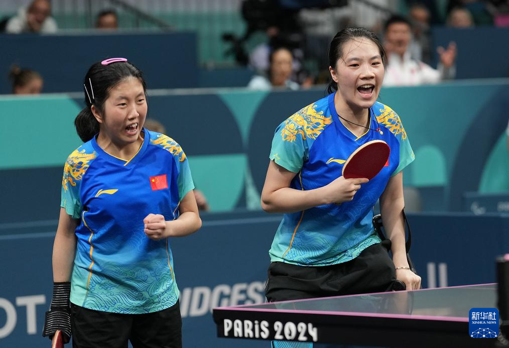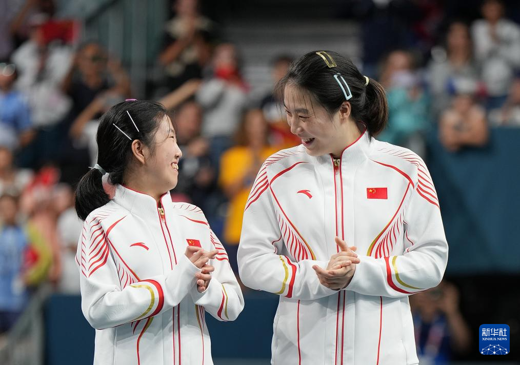 当日,在巴黎奥运会乒乓球女双14级决赛中,中国组合黄文娟/金芋成3比1战胜德国组合斯特凡妮·格雷贝/尤利亚妮·沃尔夫,获得冠军。