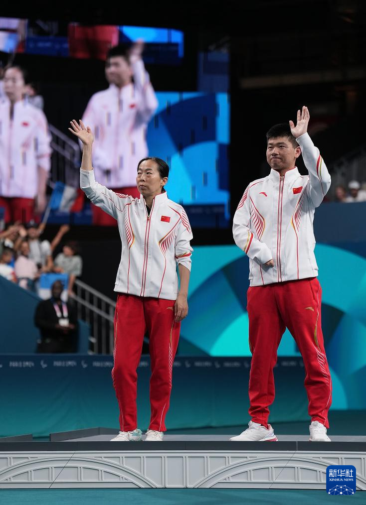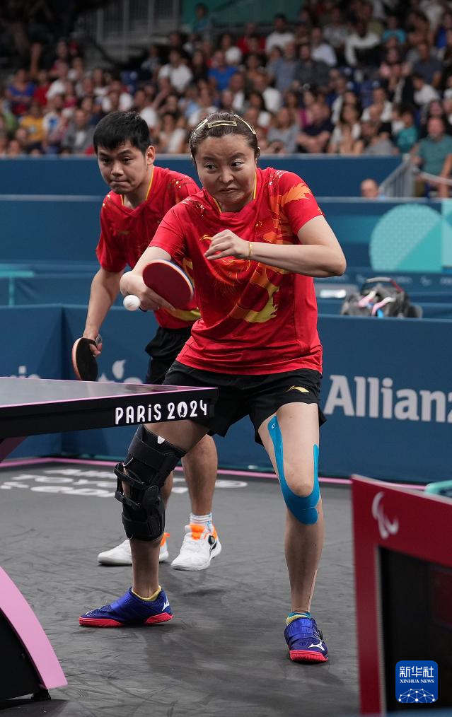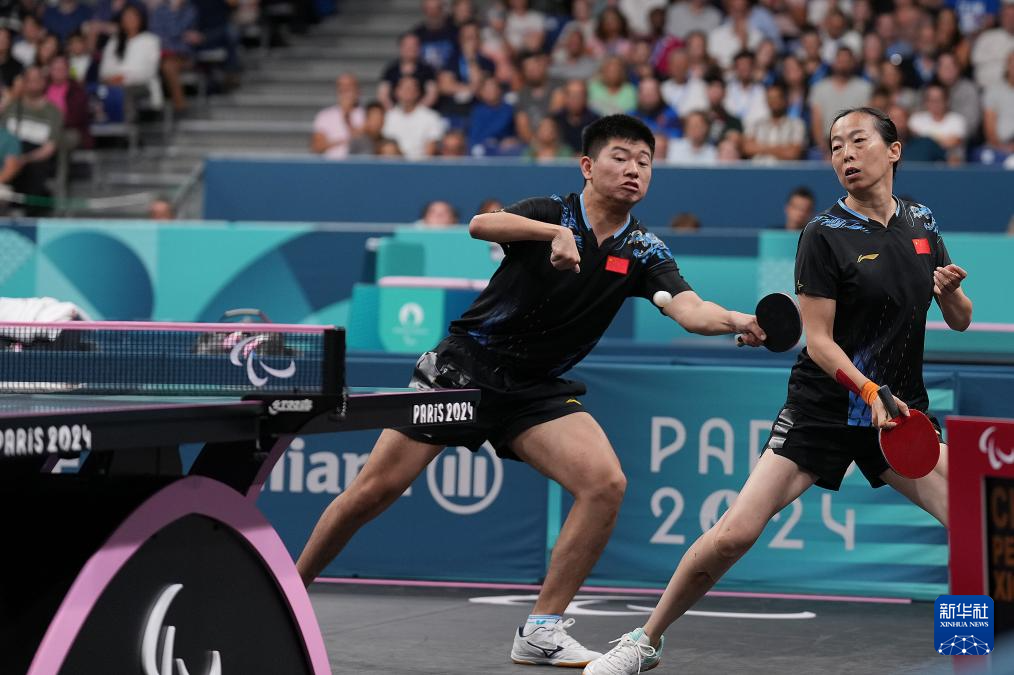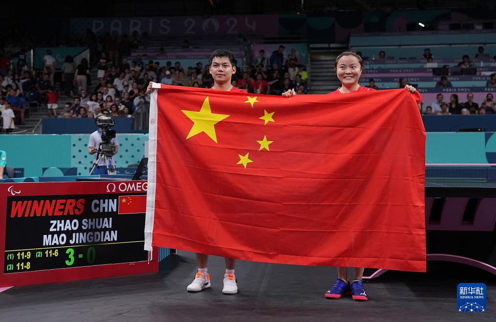 当日,在巴黎残奥会乒乓球混双17级决赛中,中国组合赵帅/茅经典3比0战胜中国组合彭伟楠/熊桂艳,获得冠军。