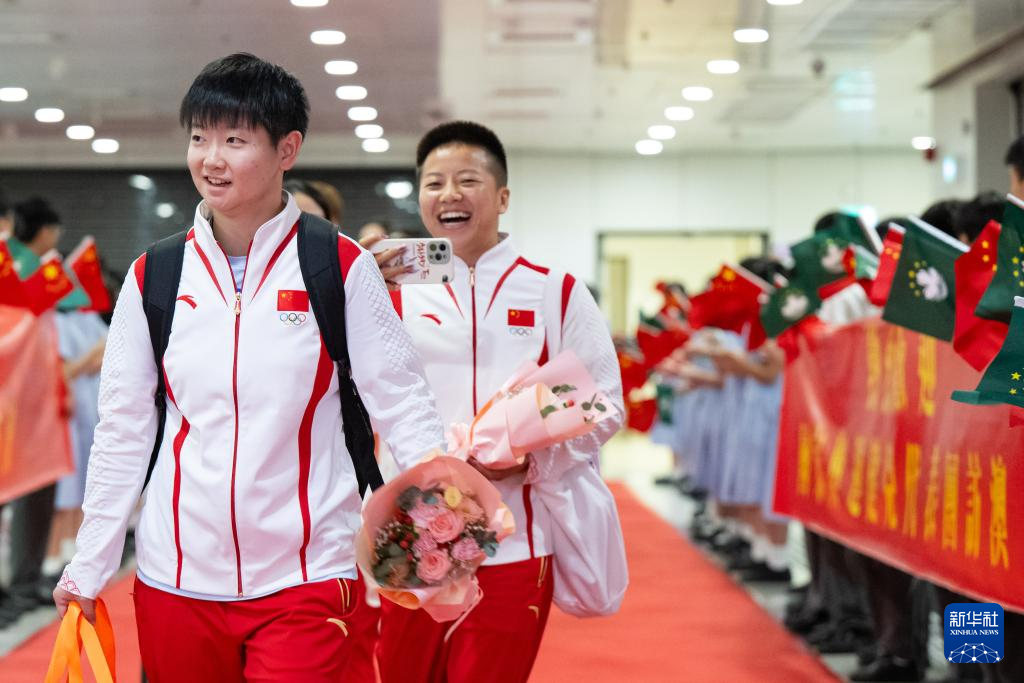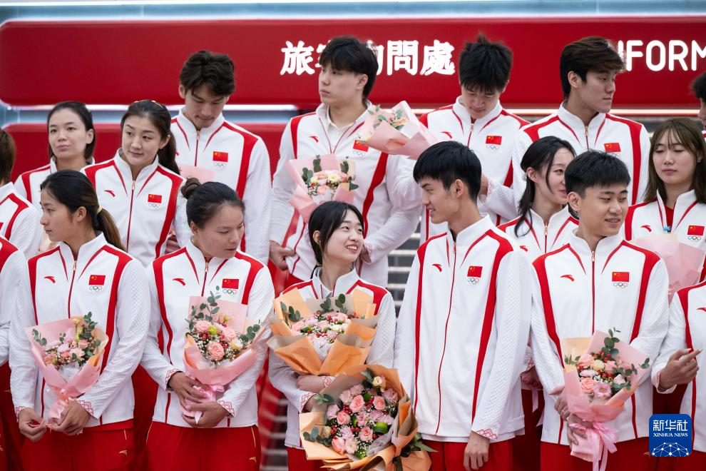 8月31日,巴黎奥运会内地奥运健儿代表团成员在欢迎仪式上。