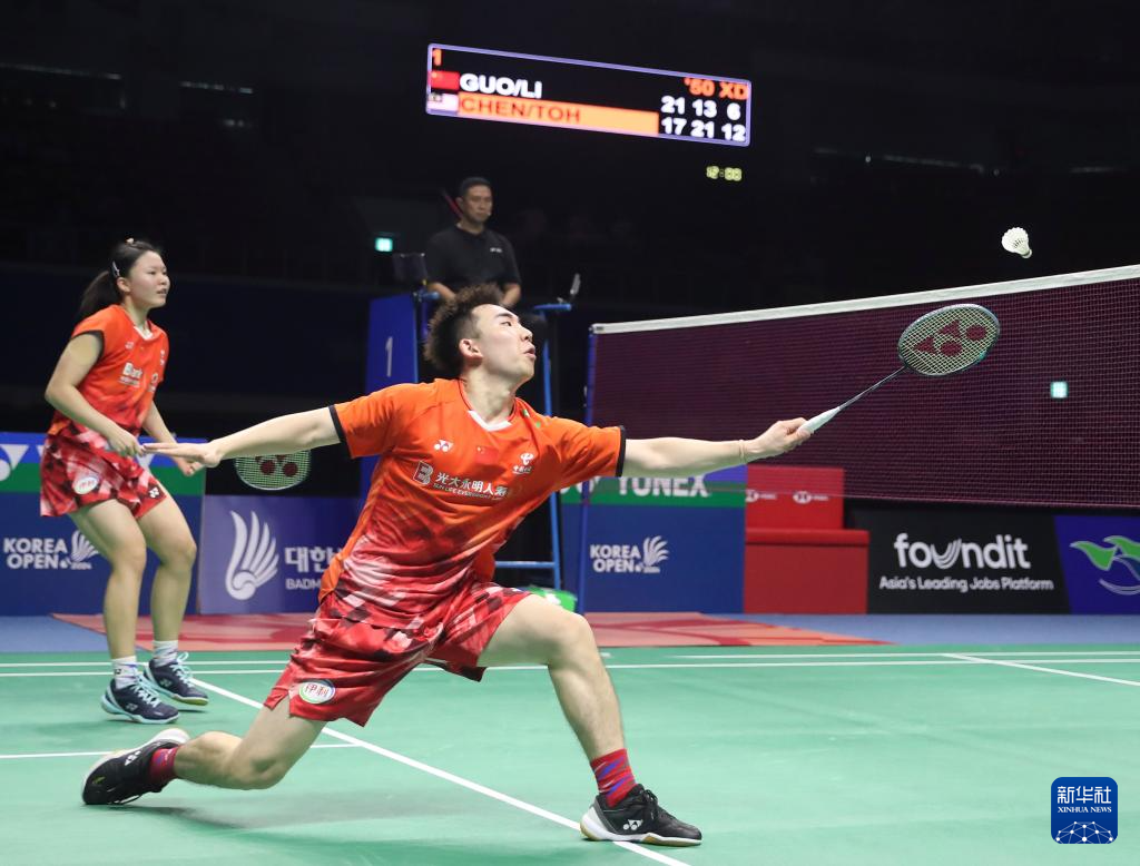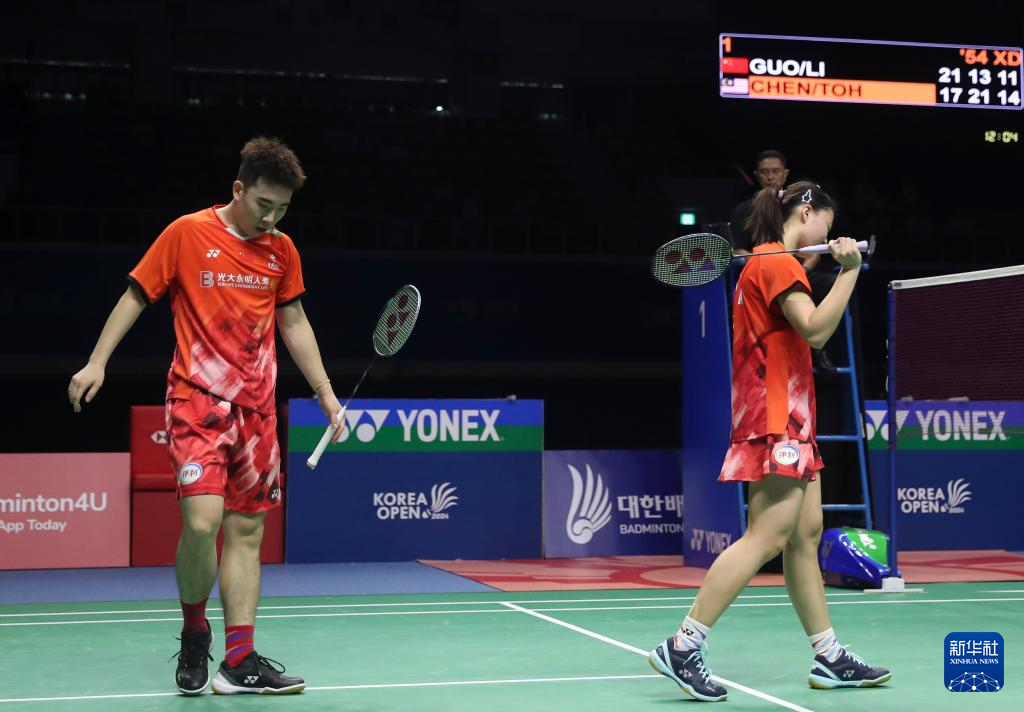 当日,在韩国木浦市举行的2024年韩国羽毛球公开赛混双决赛中,中国组合郭新娃/李茜1比2负于马来西亚组合陈堂杰/杜颐沩 ,获得亚军。
