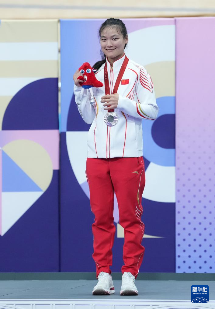 8月31日,中国选手钱王伟在巴黎残奥会场地自行车女子500米个人计时赛C1-3级颁奖仪式上。她以40秒878的成绩获得亚军,并创造新的残奥会场地自行车女子500米个人计时赛C1级世界纪录。