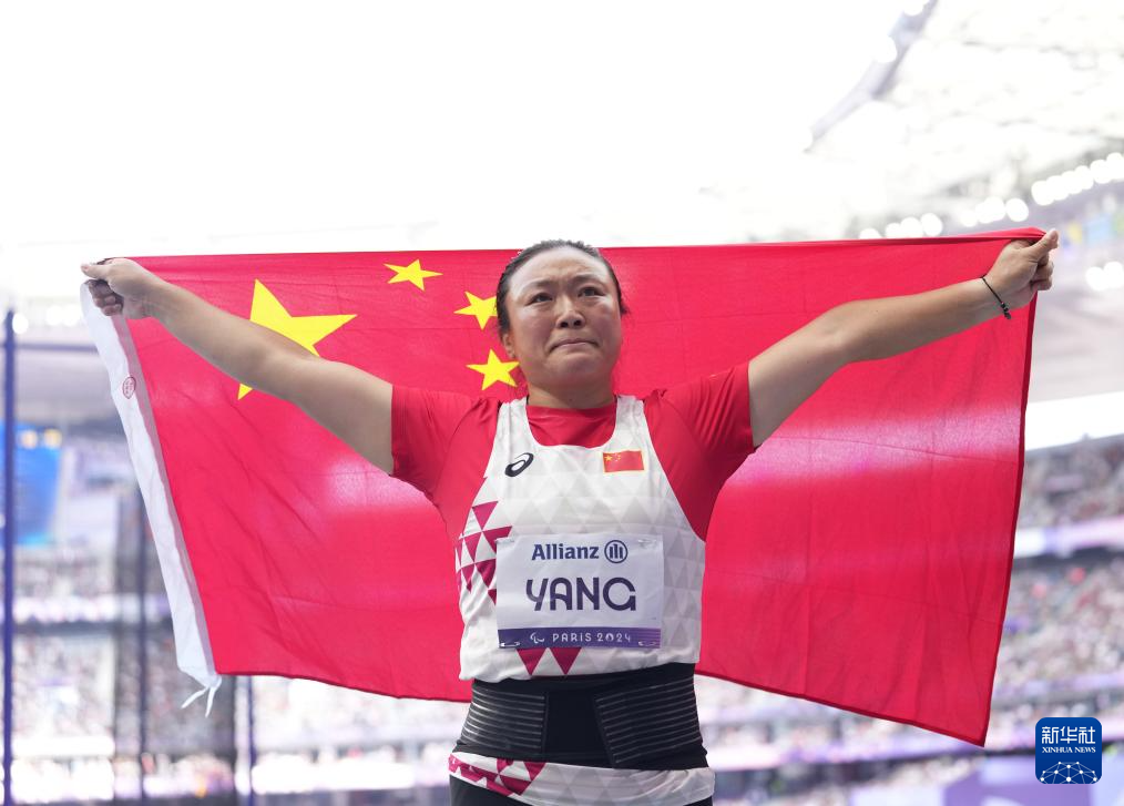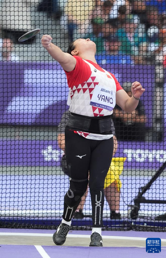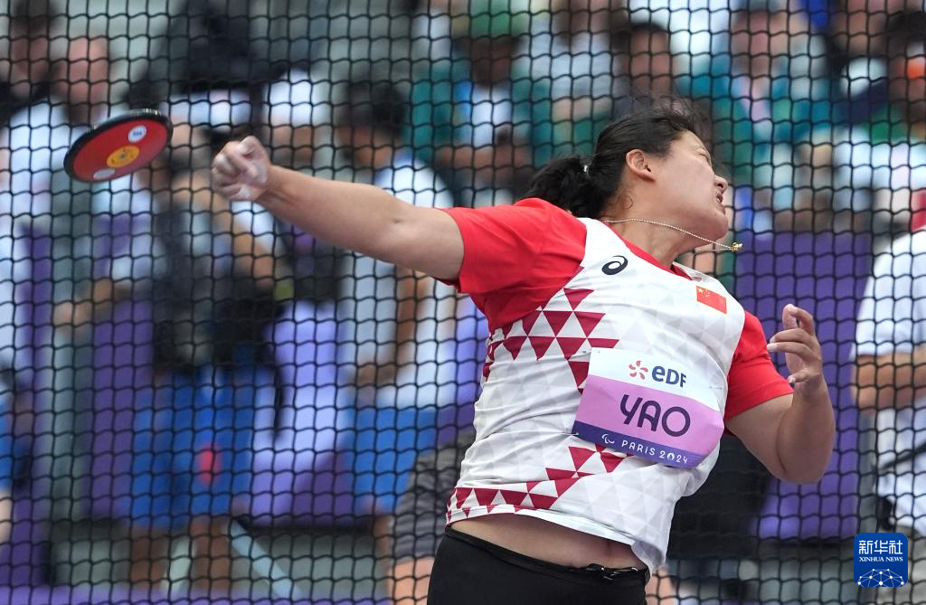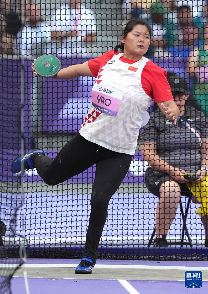 当日,在巴黎残奥会田径女子铁饼F64级决赛中,中国选手杨月以42米39的成绩获得金牌,姚娟获得银牌。