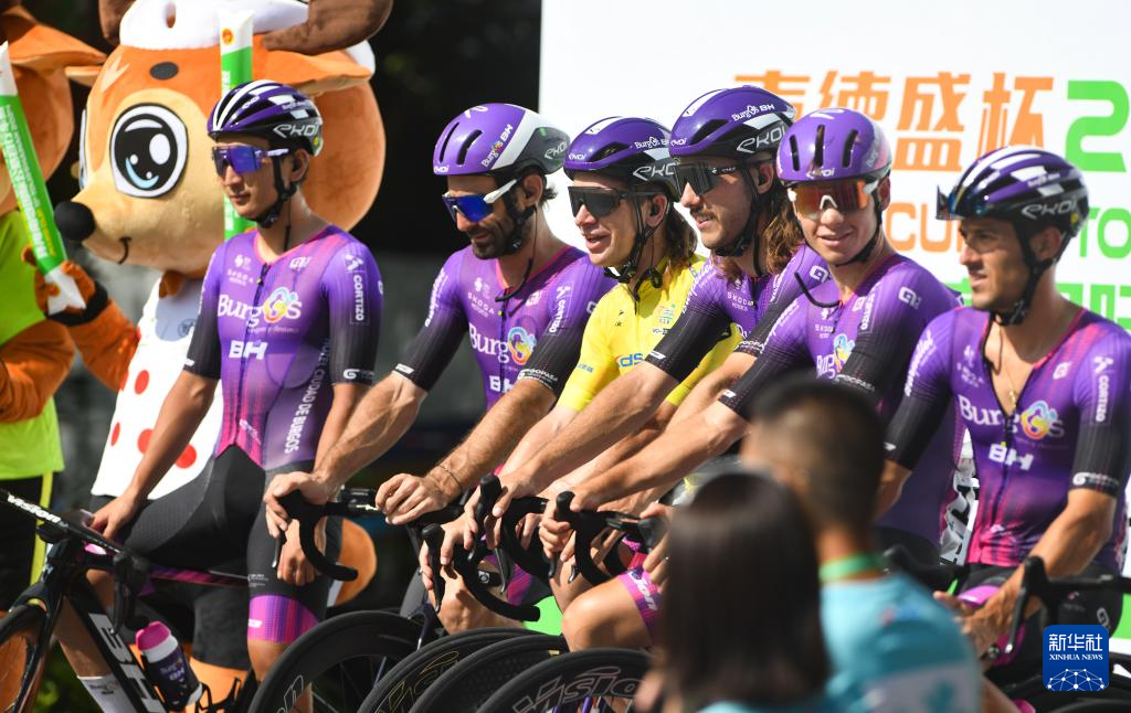 8月31日,西班牙布尔戈斯-BH车队车手盖特(左三)在比赛中。