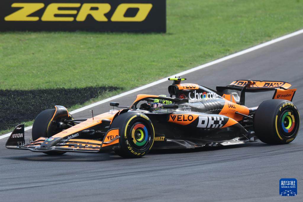 9月1日,迈凯伦车队英国车手诺里斯在比赛中。新华社记者 赵丁喆 摄