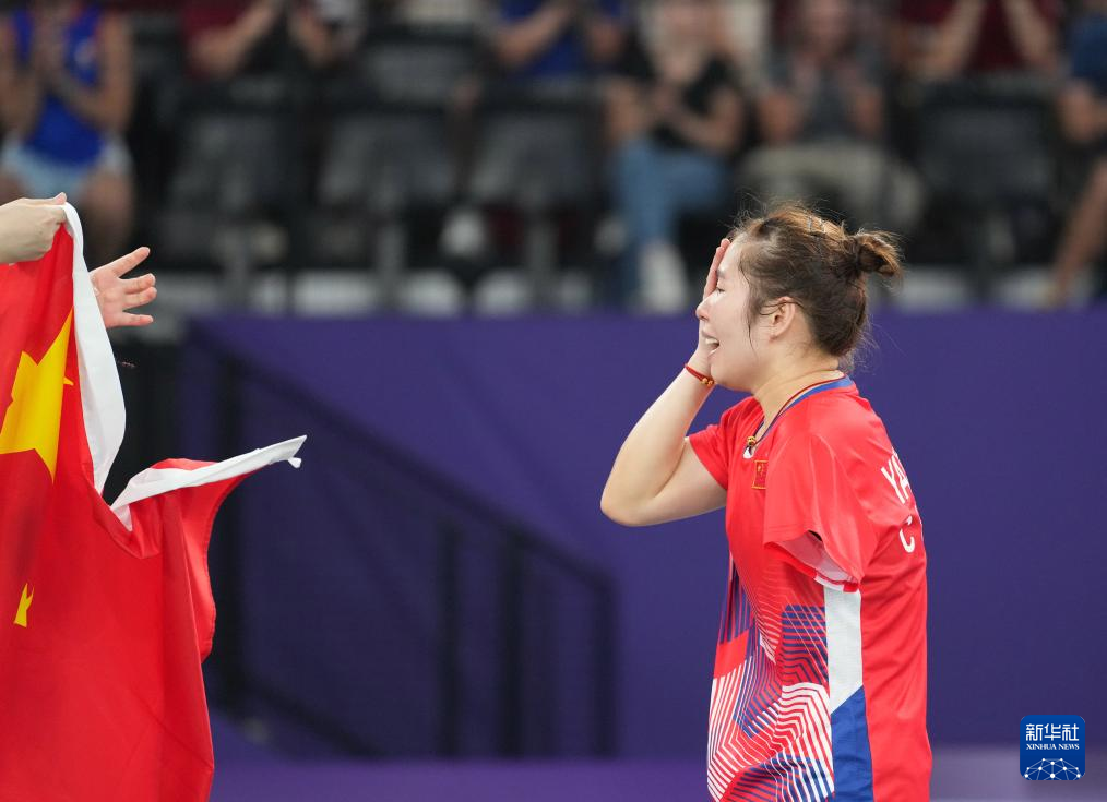 9月2日,杨秋霞在比赛后喜极而泣。新华社记者 贺灿铃 摄