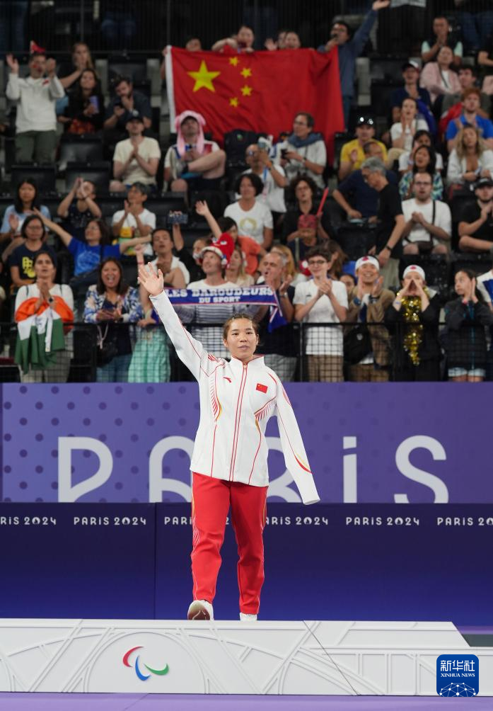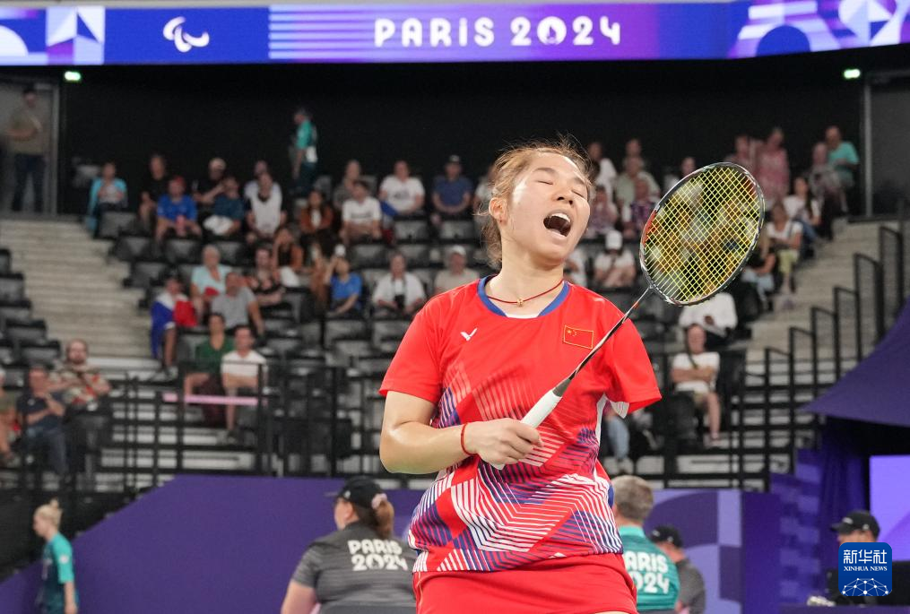 当日,在巴黎残奥会羽毛球女子单打SU5级决赛中,中国选手杨秋霞2比0战胜印度选手穆鲁盖桑,夺得冠军。