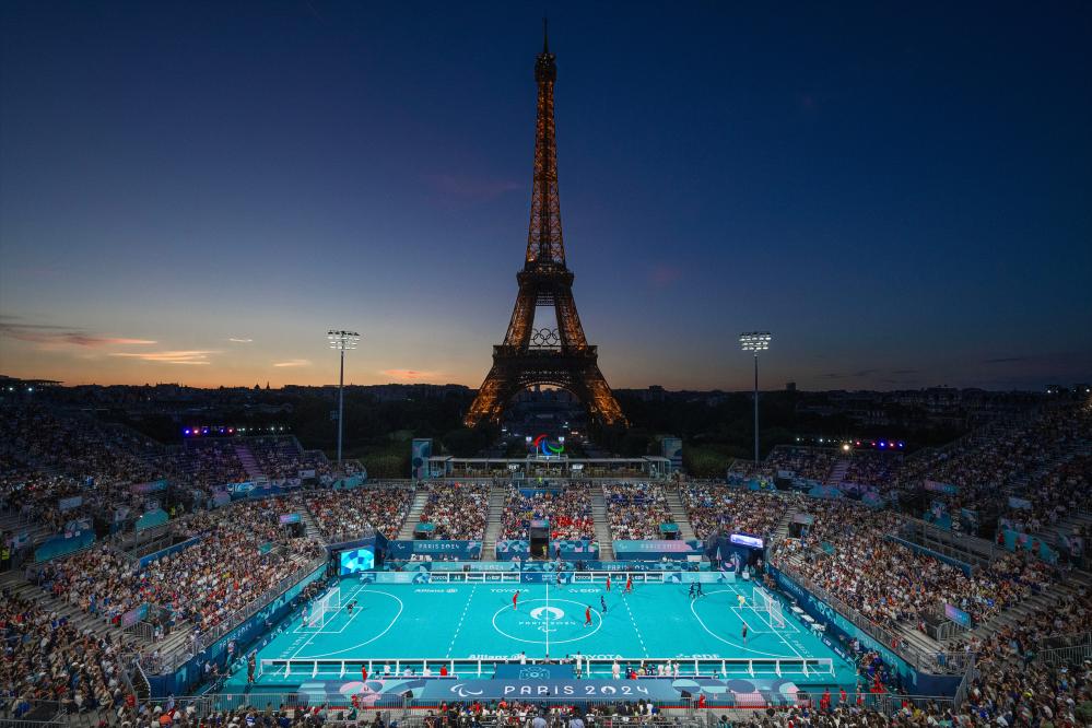 埃菲尔铁塔下,巴黎残奥会盲人足球比赛备受关注,上座率非常高。2日晚,中国队2:0战胜土耳其队的小组赛现场,除个别角落有空座外,整场几乎坐满。挥舞着法国国旗的当地观众占了绝大多数。后面紧接着还有东道主和卫冕冠军巴西队的比赛。