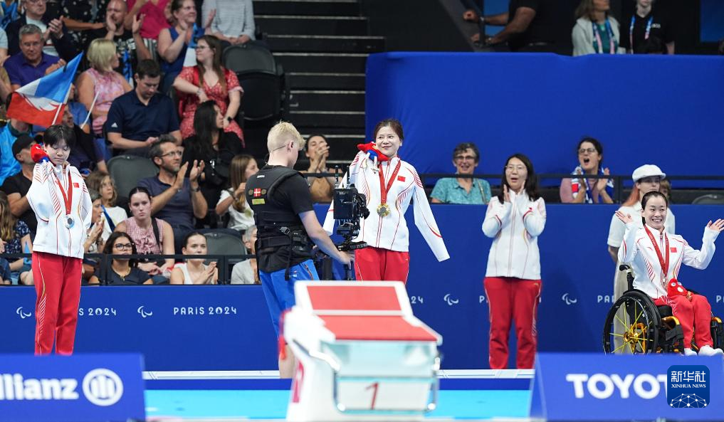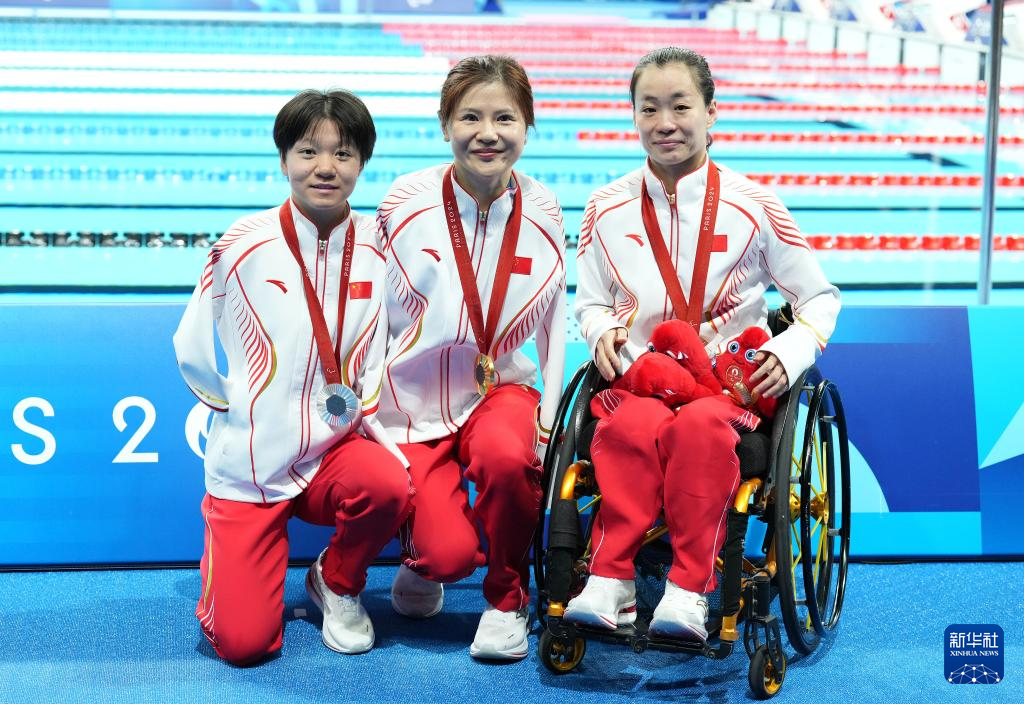 当日,在巴黎残奥会游泳女子50米仰泳S5级决赛中,中国选手卢冬、何聖羔、刘玉包揽冠亚季军。
