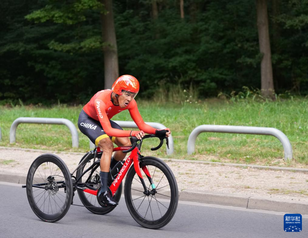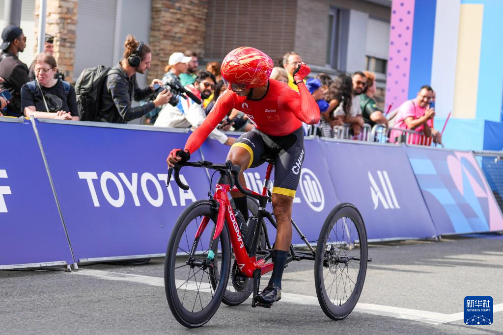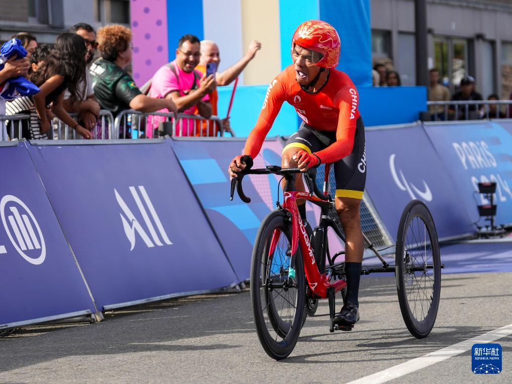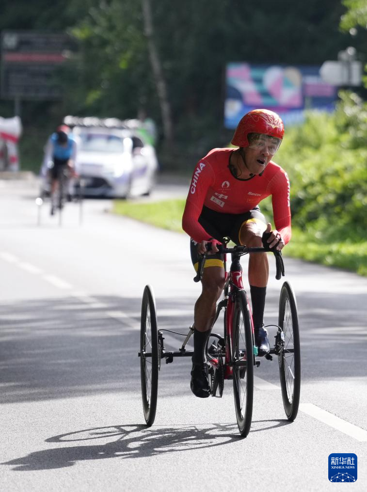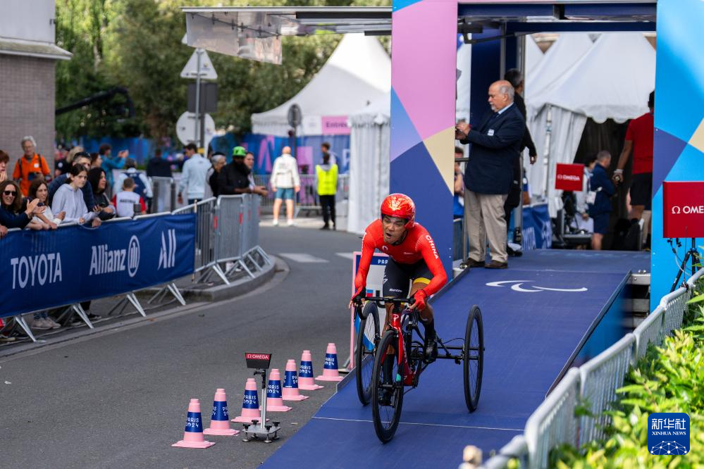 当日,在巴黎残奥会公路自行车男子个人计时赛T1-2级比赛中,中国选手陈健新以21分35秒78的成绩夺得冠军。