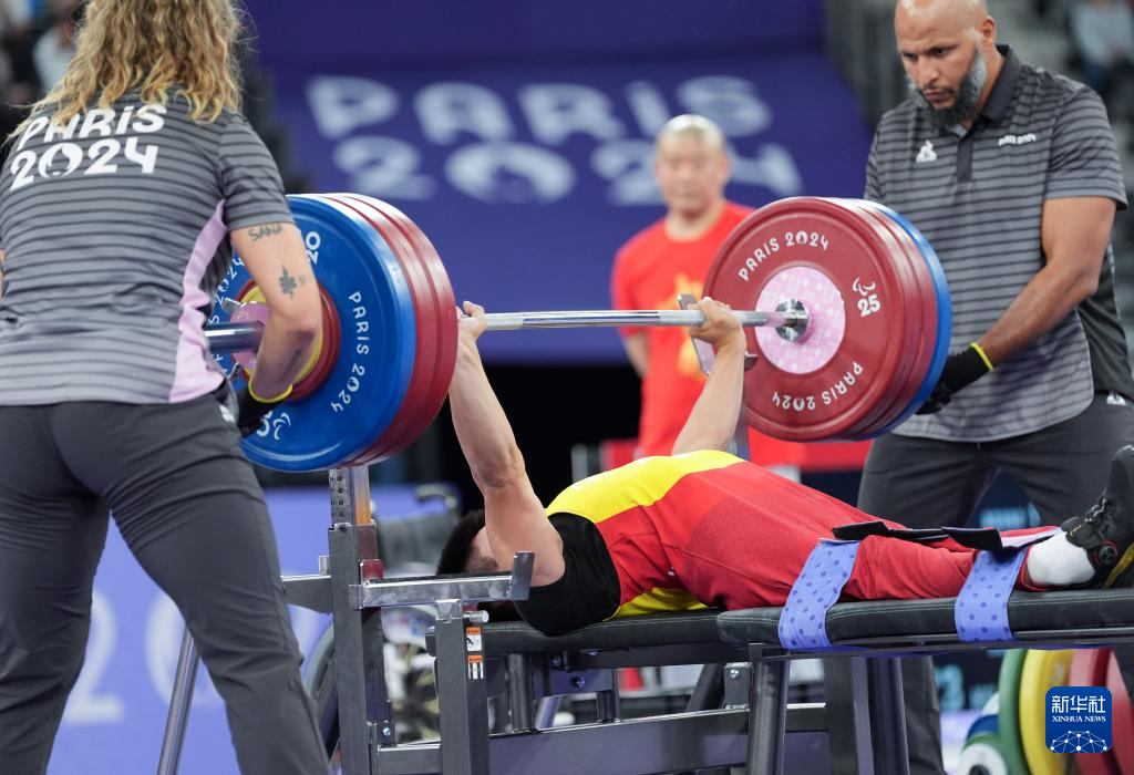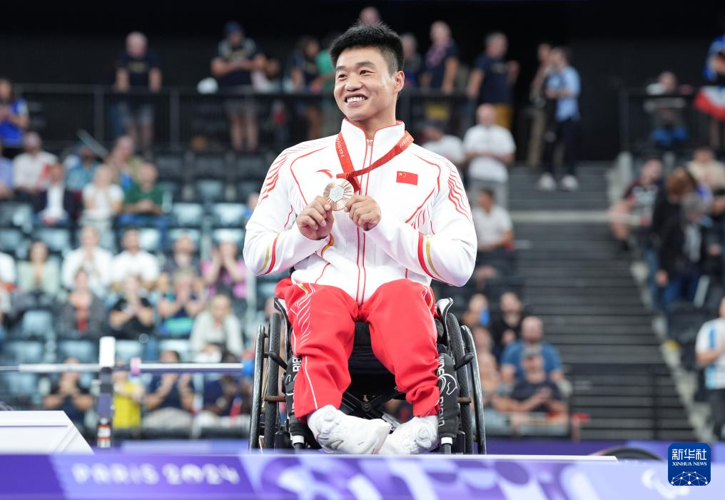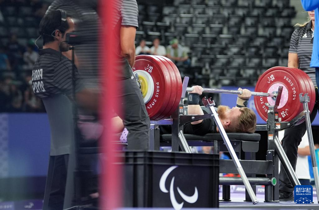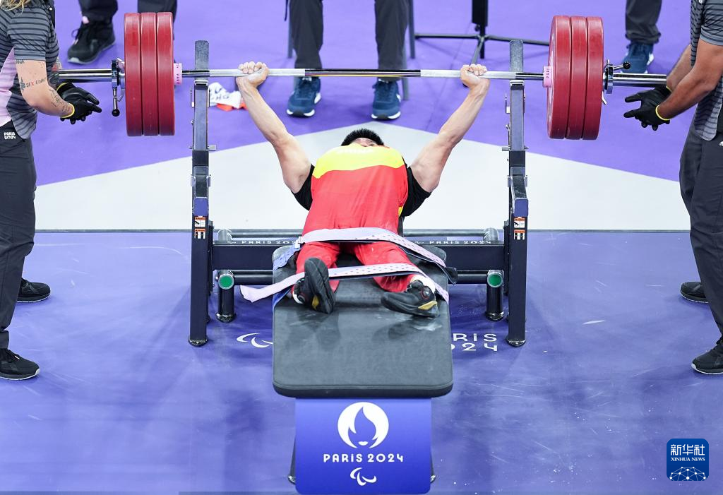 当日,巴黎残奥会举重项目男子54公斤级比赛在拉夏贝尔门体育馆举行。中国选手杨井浪获得铜牌。